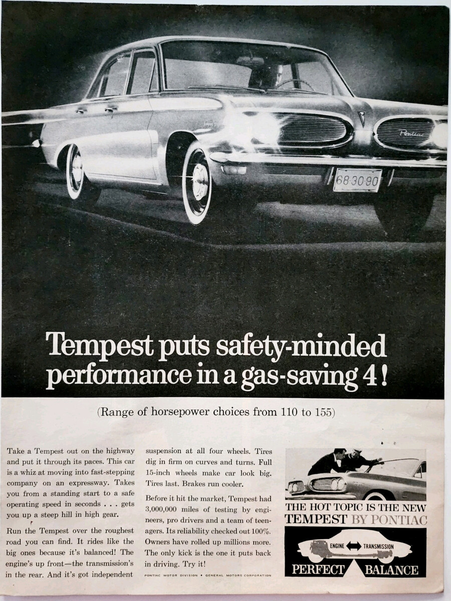 1961 Pontiac Tempest Advertisement Automobilia Classic Vintage Car DWII32