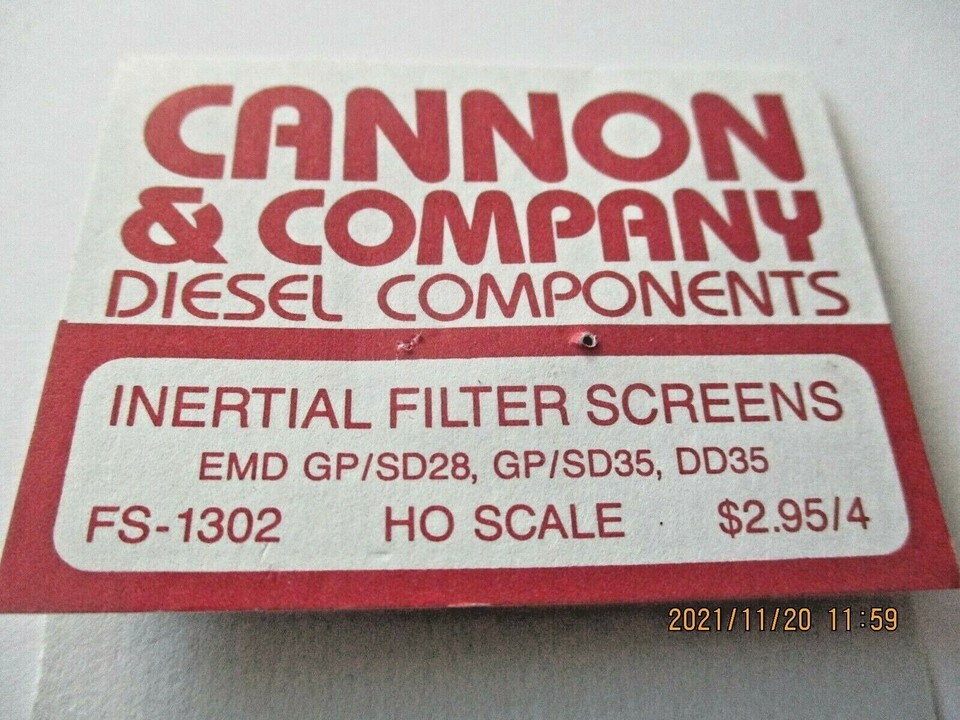 Cannon & Company # FS-1302 Inertial Filter Screens EMD GP/SD Units HO-Scale