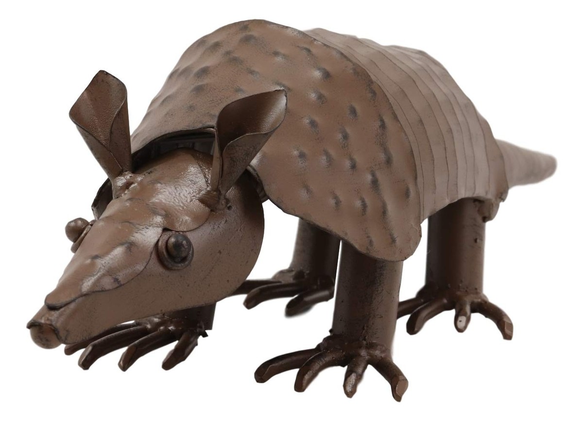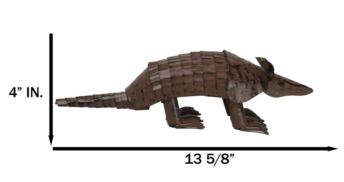 Ebros Western Rustic Forest Hand Sculpted Metal Springy Armadillo Statue 15.5" Long