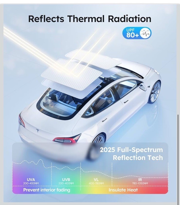Sun Shade For Tesla Model 3 Sunroof Glass Roof Sunshade UV/Heat Protection NEW!!