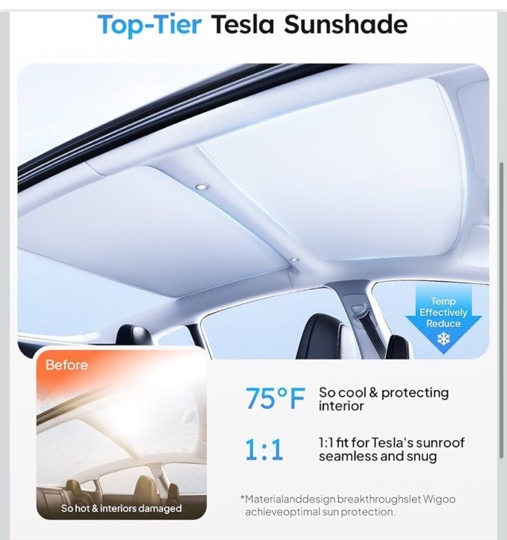 The Sun Shade for Tesla Model 3 Sunroof Glass Roof Sunshade by Wigoo is a foldable car window shade designed specifically for the Model 3. This UV protective sunshade features a white color and is easy to install, providing sun protection and reducing interior temperature. With its upgrade design, this sunshade set for Model 3 includes a roof and rear sunshade, offering UV radiation protection for the top, rear, front, windshield, and sunroof of the vehicle. Keep your Tesla Model 3 cool and comfortable with this convenient and practical accessory.