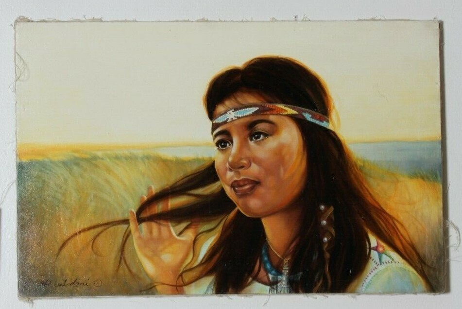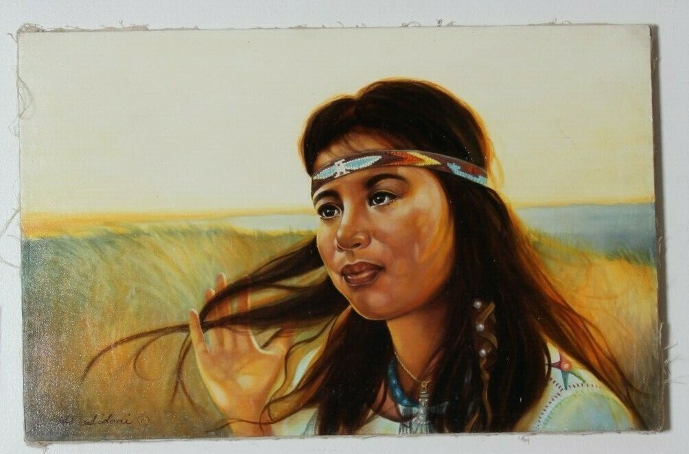 Untitled (Native American Woman w/ Head Band) dipinto ad olio di Anthony Sidoni