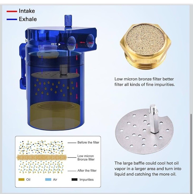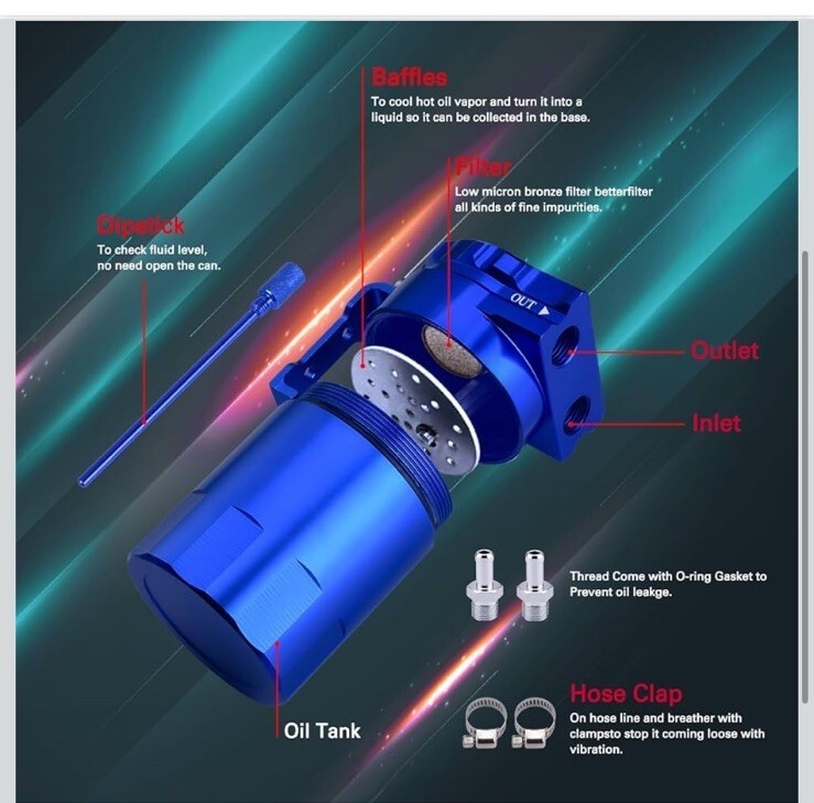 Universal Aluminum Oil Catch Can Kit Reservoir Baffled Tank Blue Color