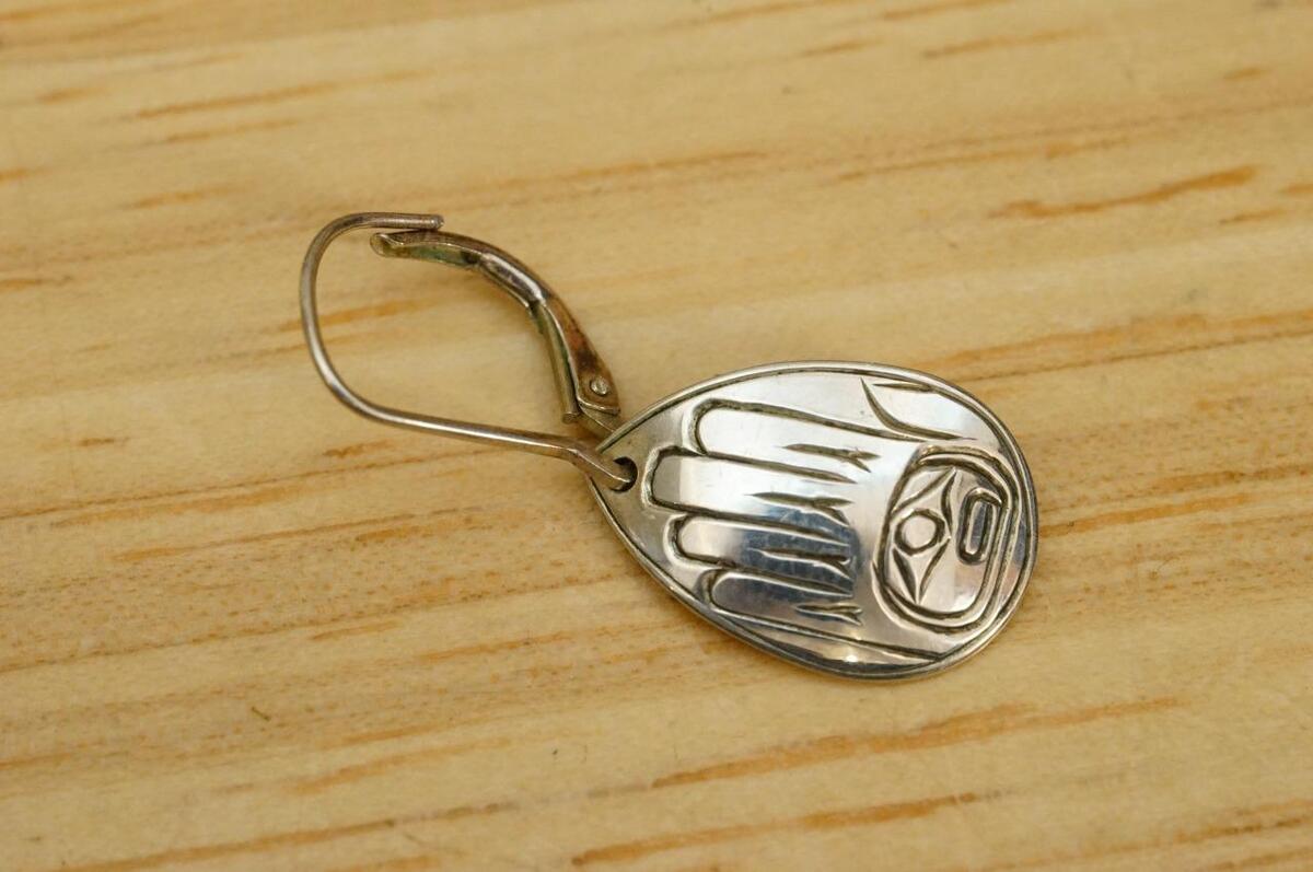 Artisan Jewelry RIA 925 Sterling Silver Navajo Bear Paw Single Dangle Earring - 2008, signed on the back. 3/4" pendant 1.25" total drop.