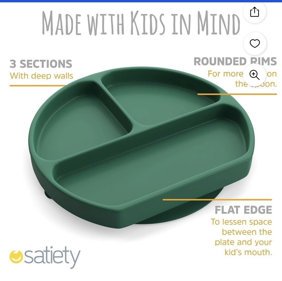 First Stage toddler plate With Suction Feeding Supplies for Kids, Microwave Dishwasher Safe Green