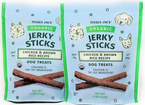 Trader Joes Organic Jerky Sticks Chicken Brown Rice Recipe Dog Treats, Chicken is the 1st Ingredient 5oz/142g (Pack of 2)