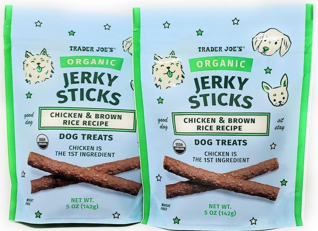 2-Pack Trader Joes Organic Jerky Sticks Chicken & Brown Rice Recipe Dog Treats,