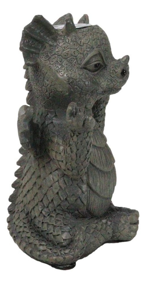 ? This Whimsical Faux Stone Dragon Figurine is made of designer composite resin, hand painted and polished individually. Color Tone may vary.