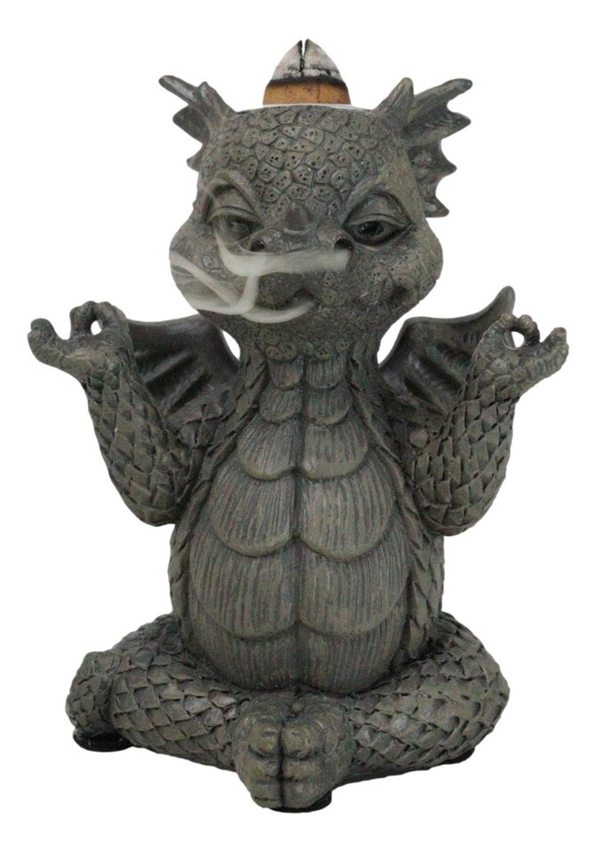 ? Sitting in deep meditation, this whimsical dragon collects his thoughts and keeps his emotions in zen mood. If you are a Yoga lover who happens to also love dragons, then this sculpture will be the perfect fit! When backflow cone is lit, trails of smoke will permeate through his nostrils.