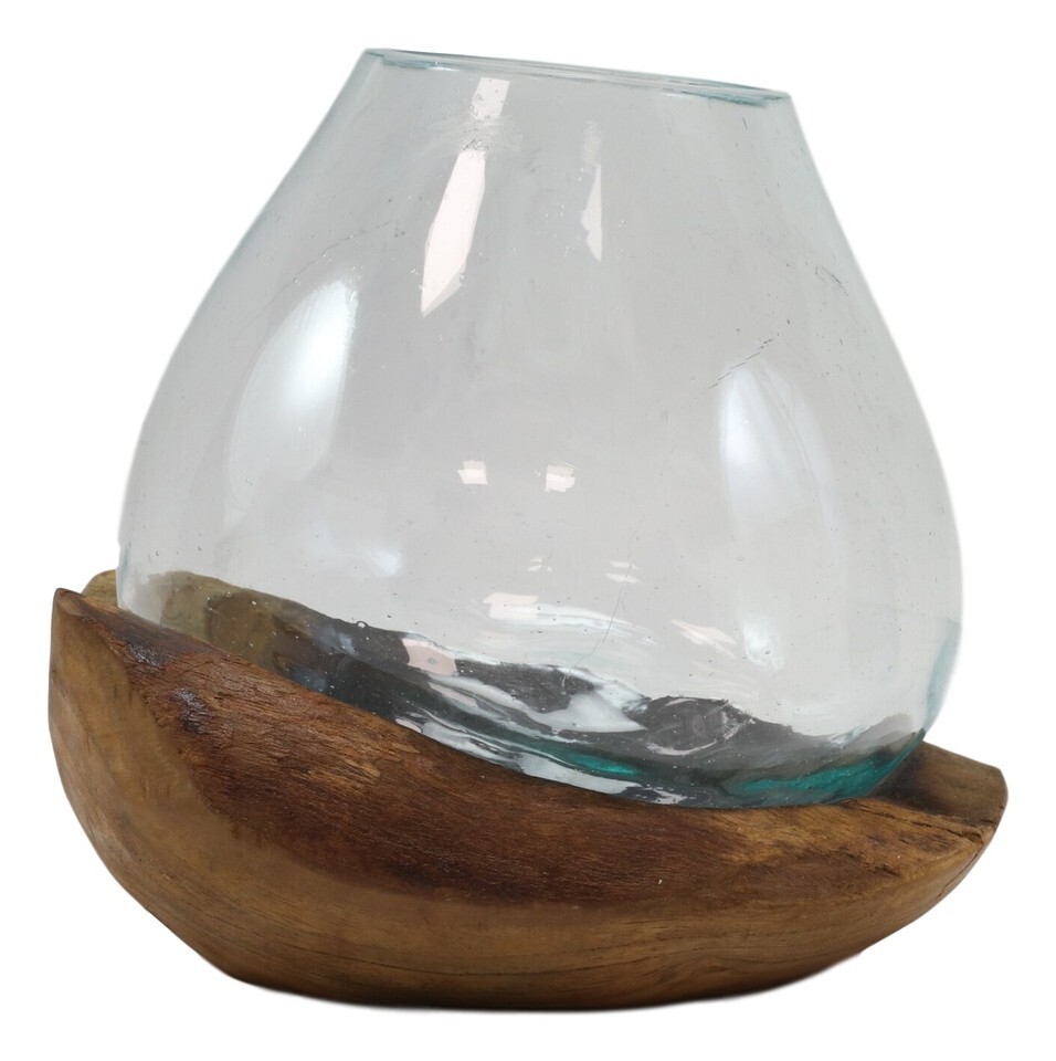 ? Each design is its own unique work of art. We work directly with the artists in Indonesia Bali to ensure a responsibly sourced, quality product. Each piece will have small variations due to its handcrafted and organic nature. We sell them in approximate size categories. The item you receive will not match the picture exactly. Item will be roughly the same size; Each piece of wood is completely different and hence the molding shape of the glass bowl.