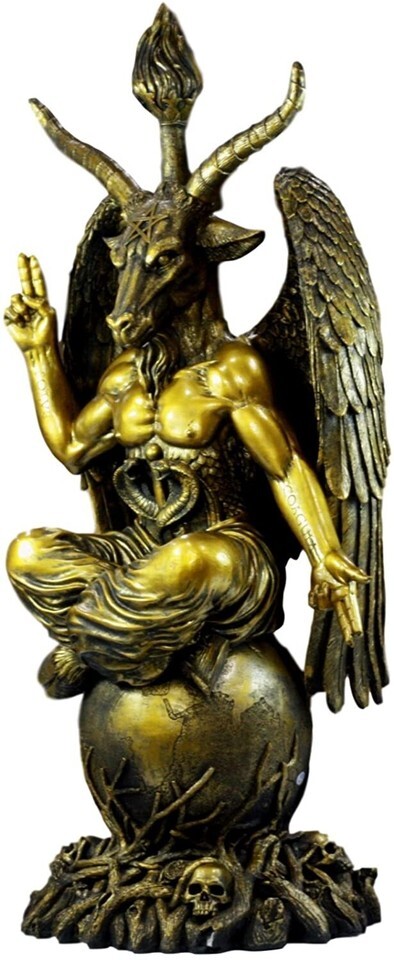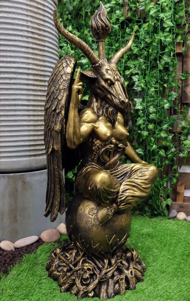 ? This Oversized Baphomet Statue is made of designer composite resin and crushed stone, hand painted and polished in gold individually.
