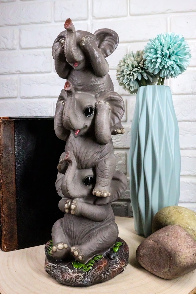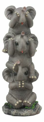 Ebros Pachyderm Friends Whimsical See Hear Speak No Evil Elephants Totem Statue