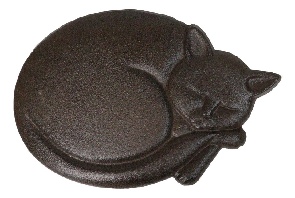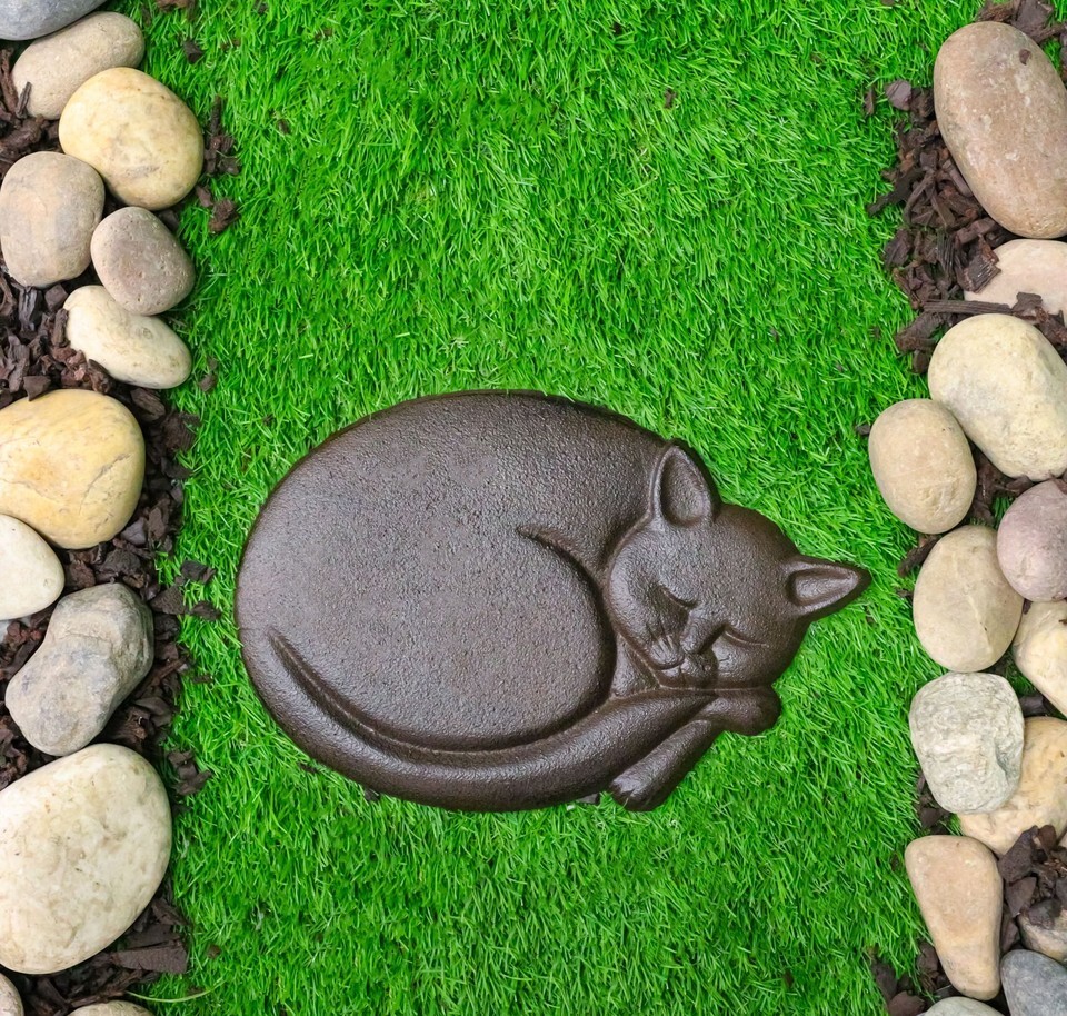 ? Enhance your garden path with the Cast Iron Sleeping Cat Garden Stepping Stone. Featuring a charming curled-up cat design, this piece adds warmth and personality to any outdoor space. Crafted from durable cast iron, it's built to withstand the elements while serving as both a functional stepping stone and a decorative accent. Perfect for cat lovers, it brings a cozy, whimsical touch to flower beds, walkways, or patio areas.