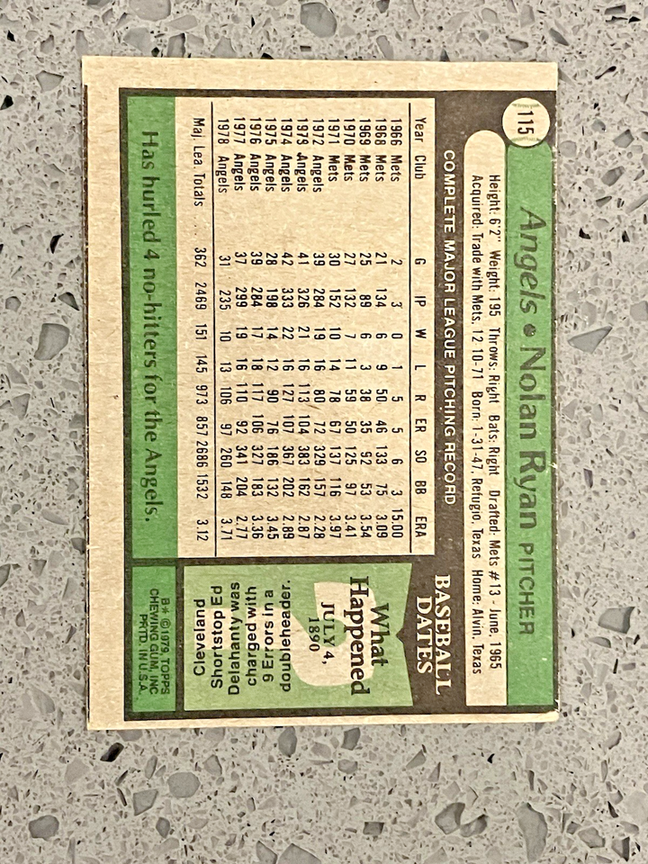 1979 Topps Baseball Card #115 Nolan Ryan Pitcher California Angels Hall of Fame