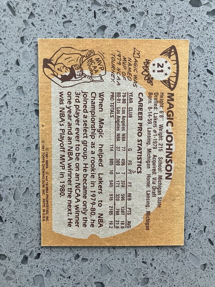 1981-82 Topps Magic Johnson #21 NM-MT Vending 2nd Year/ Solo Rookie Card RC A