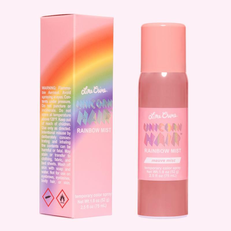 This is a great brand new in box Lime Crime Unicorn Hair Rainbow Mist temporary wash-out hair color spray. Color Mauve Mist - (medium browish pink color, will appear differently depending on the hair color you are spraying it onto). 2.5 fl. oz. size.