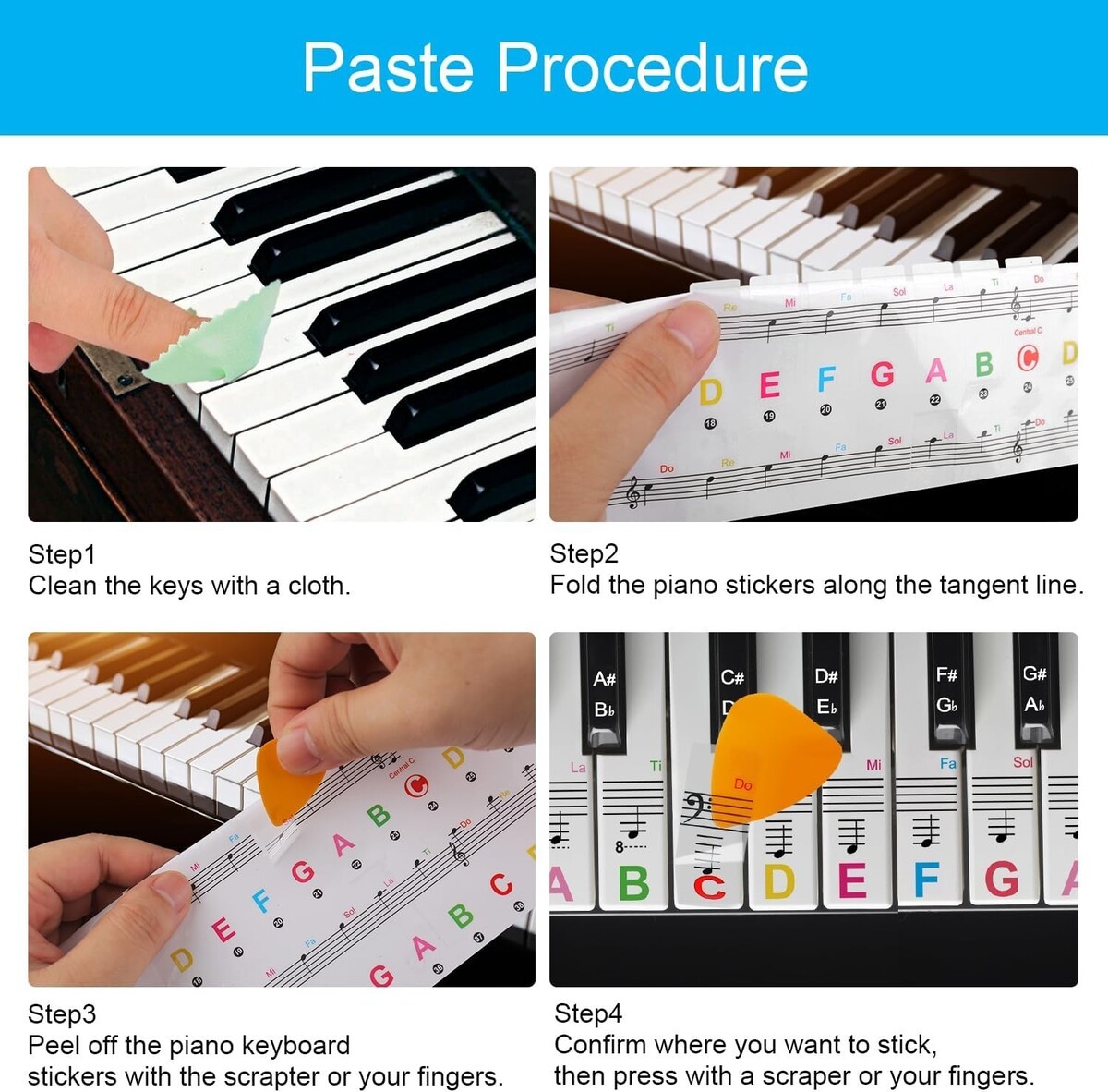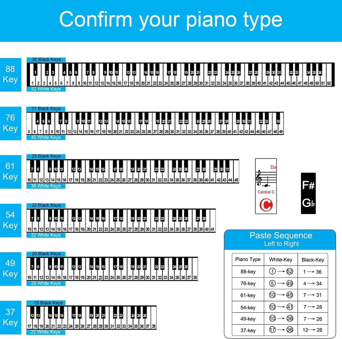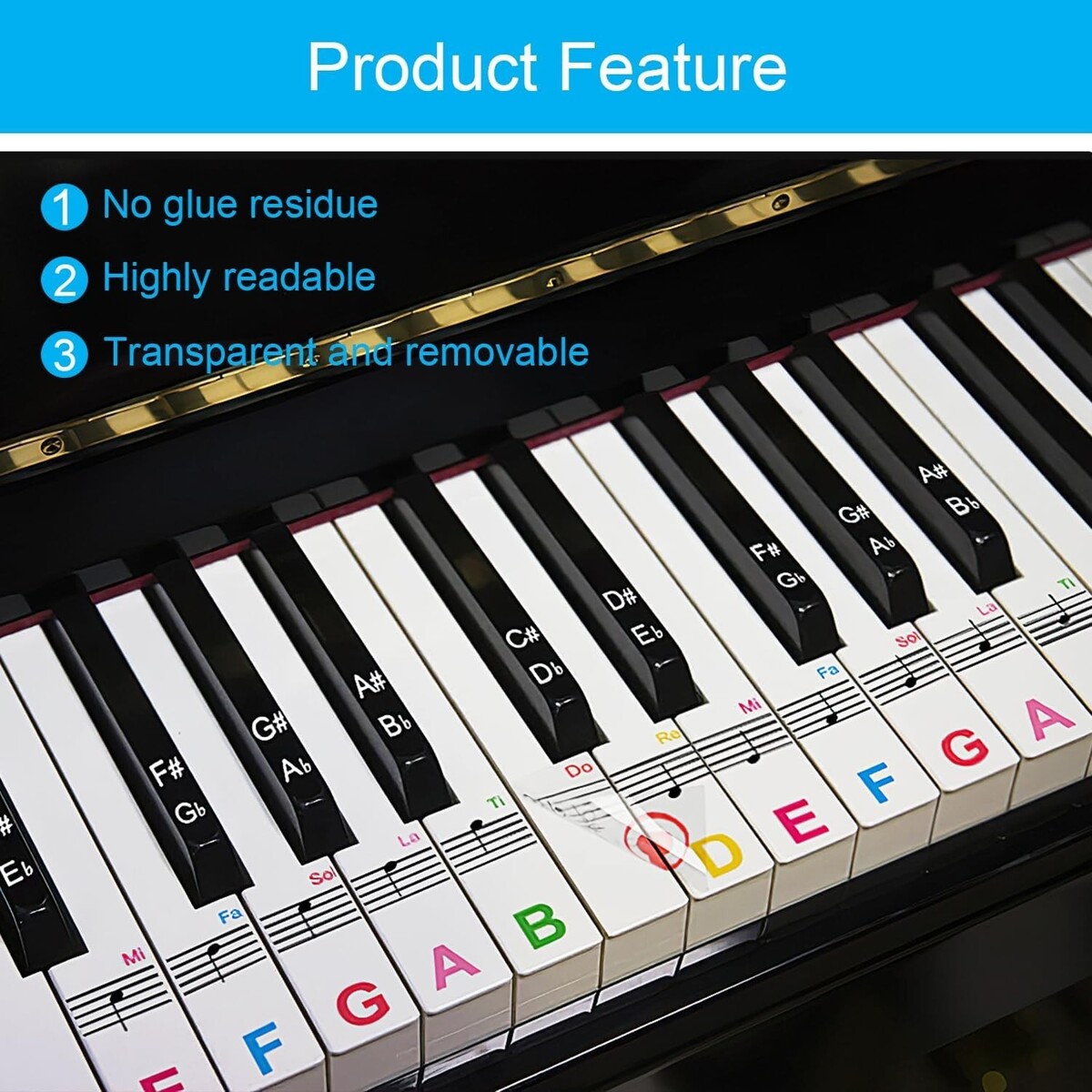 1 Pack Piano Keyboard Note Stickers, 88/76/61/54/49 Keys, Colorful Transparen...