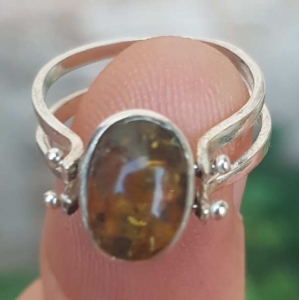 THIS REVERSIBLE RING IS HANDMADE WITH NATURAL LARIMAR - AMBER gemstones and 925 sterling silver.