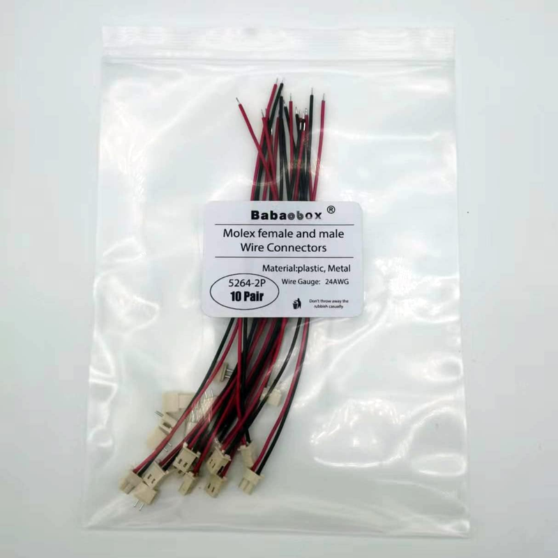 Package Content: 10pcs MOLEX 5264 2Pin Wire Connector and 10pcs Female 2Pin Header Connector