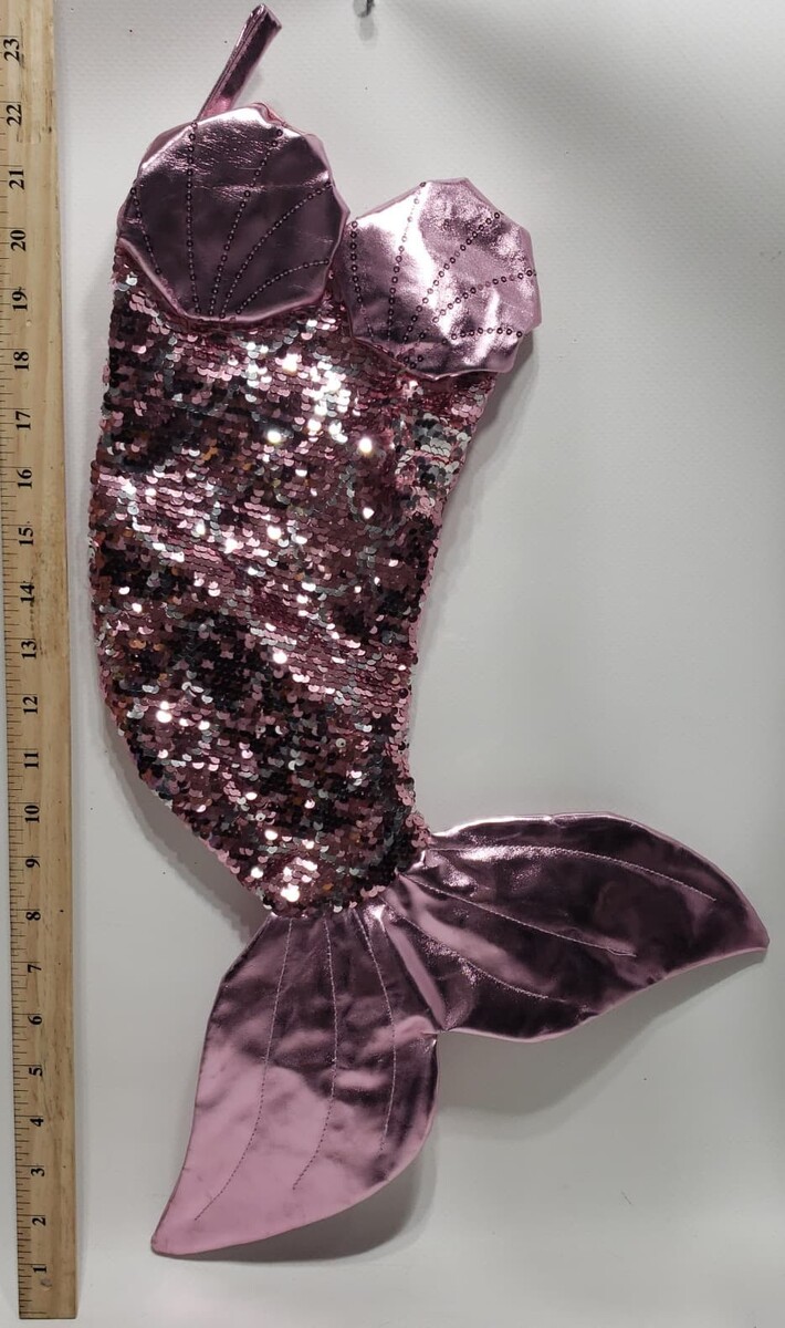 Holiday Time Sequined Mermaid's Tail Christmas Stockings Pink 20 in