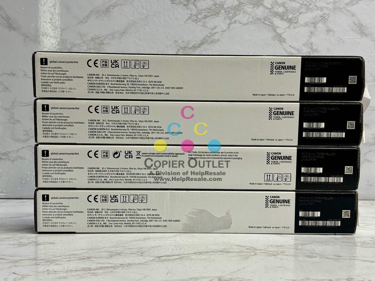 Lot Of 4 New Genuine Canon GPR-66 Magenta Yellow Toners (No Cyan Black) New Same Day Shipping FOR iR Advance C3926,C3930,C3935,C3326 Listed by: Renee (Sales Team) ?Don?t dream of winning, train for it!?~Mo Farah (A positive moment brought to you by Help Resale) Copier Outlet (A Division of Help Resale) Copier Outlet was established in 1993. We buy and sell both domestically and internationally and have wide assortment of copiers, consumable and accessories of all popular brands. All of our copiers are in house and available for your inspection. They all have been tested and rated for functions, cosmetics and overall appearance. Our consumable and accessories selections include toners, imaging units, developers and copier parts such as fax board, fixing unit, fuser unit, roller, cleaning brush, drum blades and etc. For more detailed information on our copiers, consumables and accessories, please feel free to give us a call. We are more than happy to assist you with the pricing and guide you to find the copiers, consumable and accessories you wish to buy. Best Regards, Copier Outlet Sales Team Monday - Friday: 9:00 am to 5:00 pm (PST) Copier Outlet Promo Video - YouTube Video will open in a new windowUsing the App? Paste link into a browser window: [isdntekvideo] All product and company names are trademarks TM or registered trademarks of their respective holders. Use of them does not imply any affiliation with or endorsement by them.