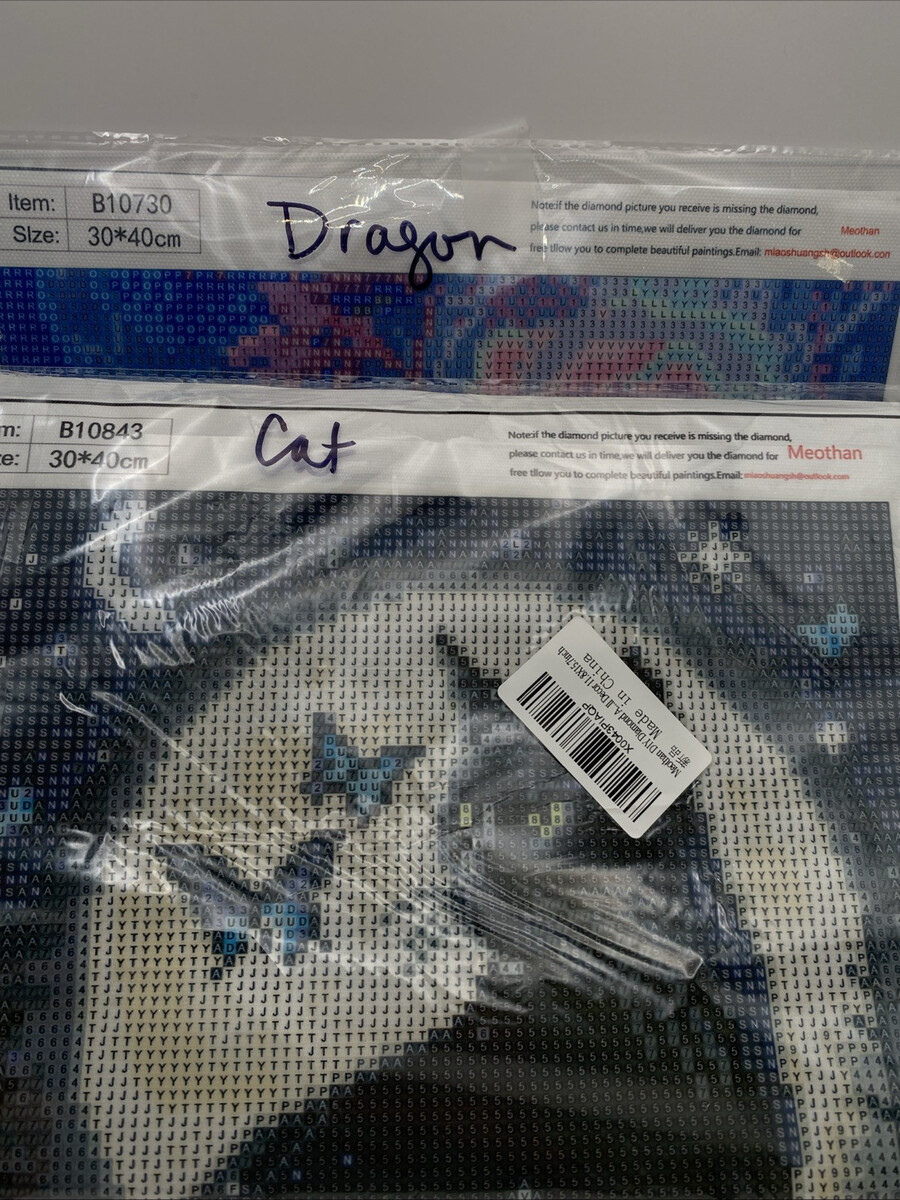 5D Diamond Painting Kits 30 cm x 40 cm Cat/Dragon Lot of 2 NEW