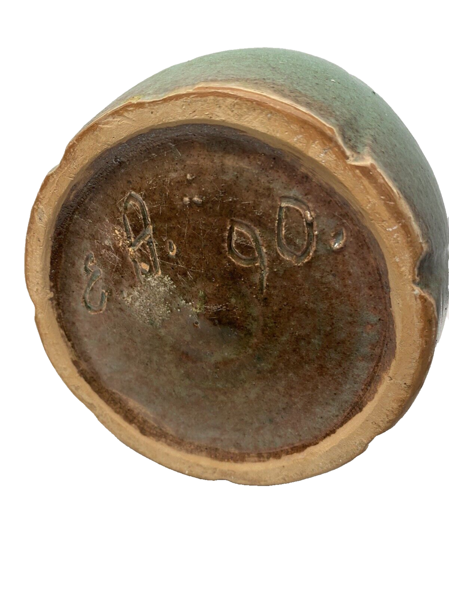 Art Studio Handmade Pottery Vase/Pot Green Signed E.A. '90