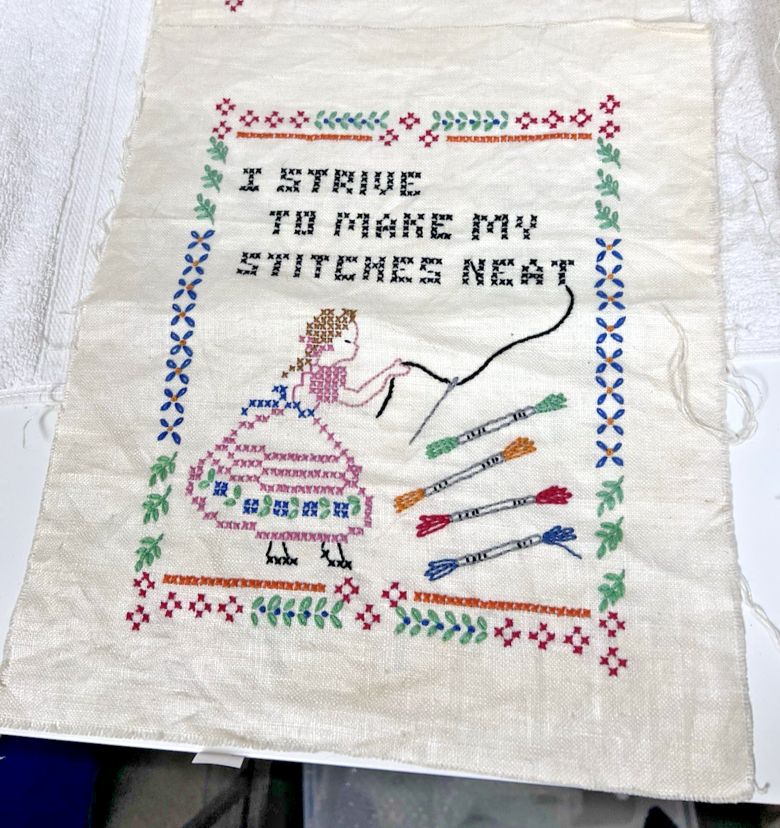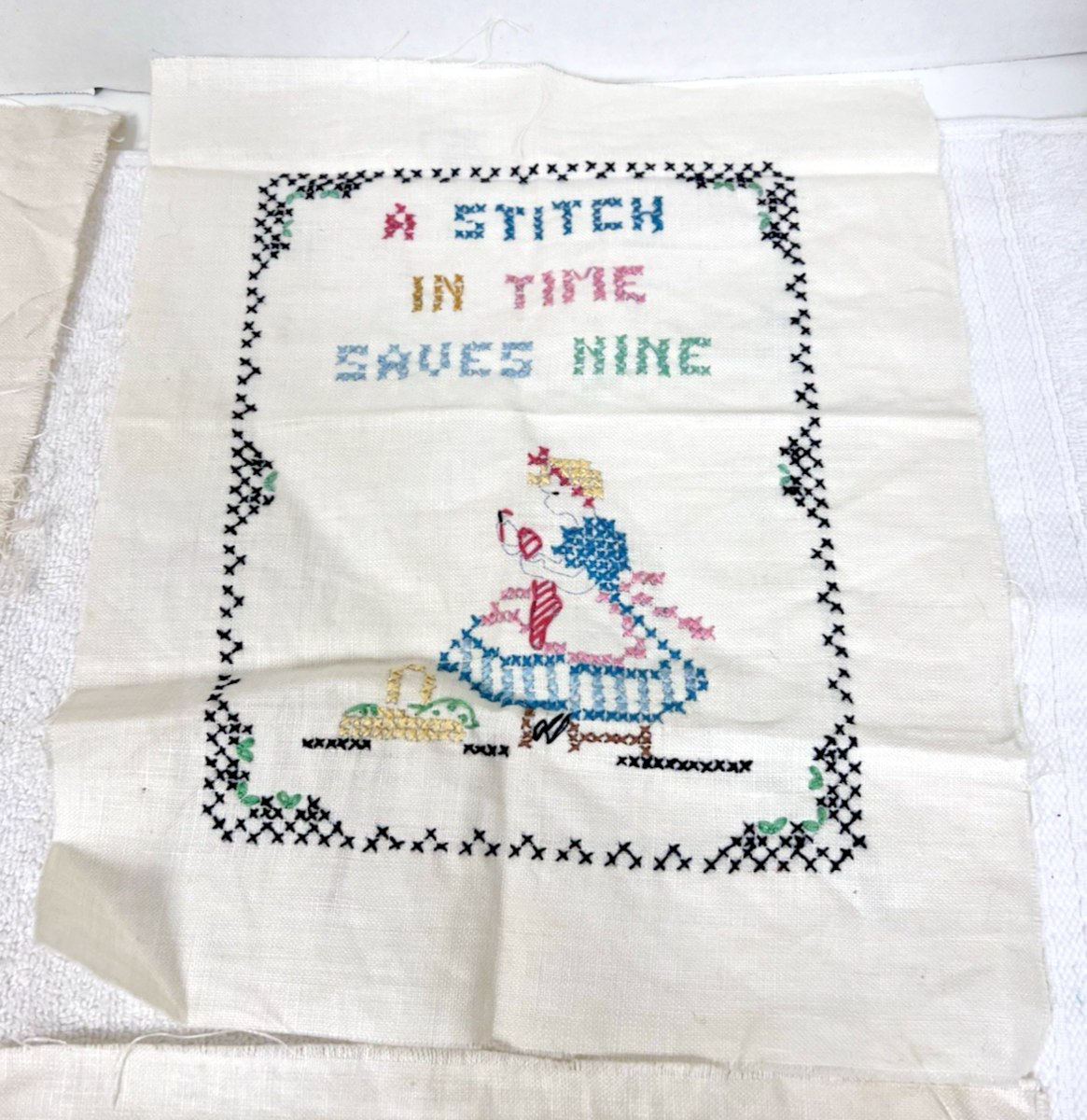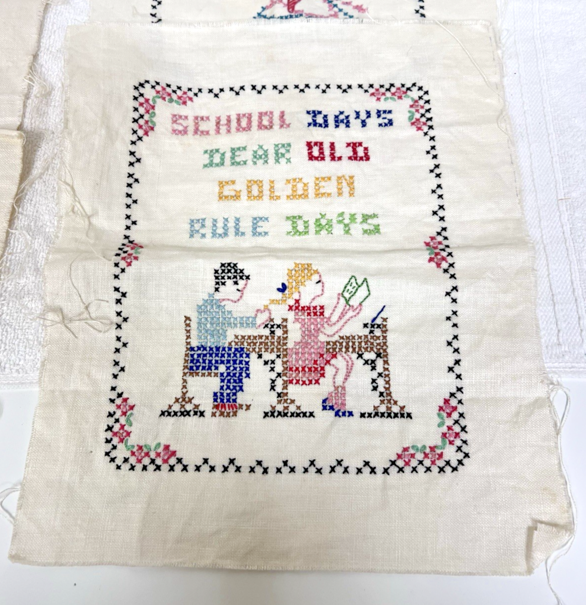 4 Hand Embroidered 1st Sampler Stitch in Time School Days Neat Stitches 12 x 9.5