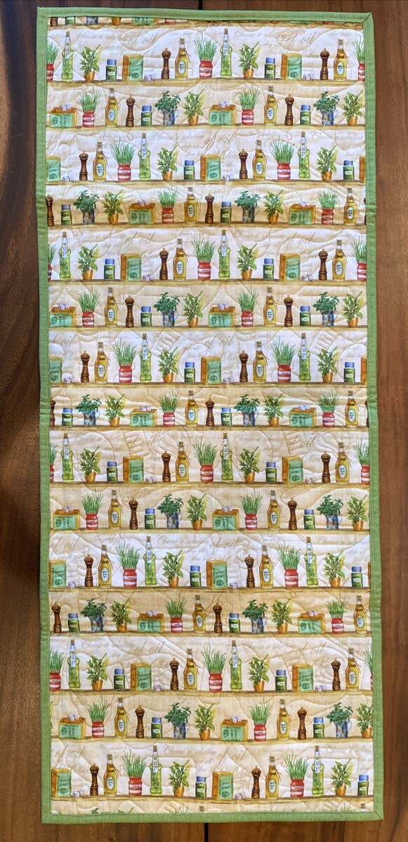 Artisan Made Quilted Table Runner Herb Theme 14.5" x 36" NEW