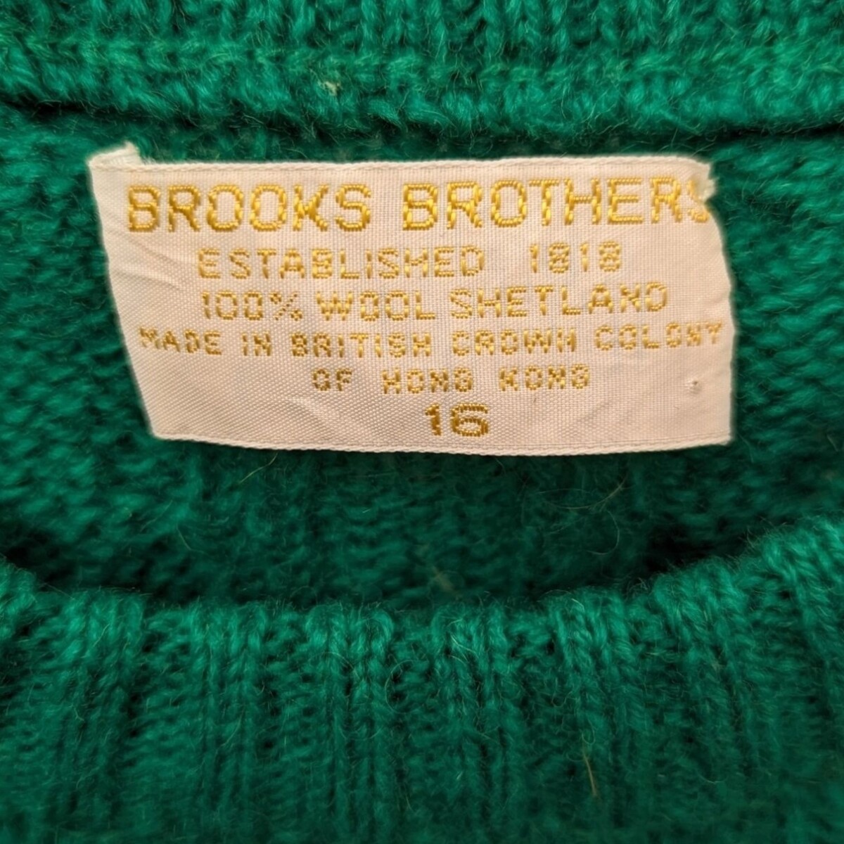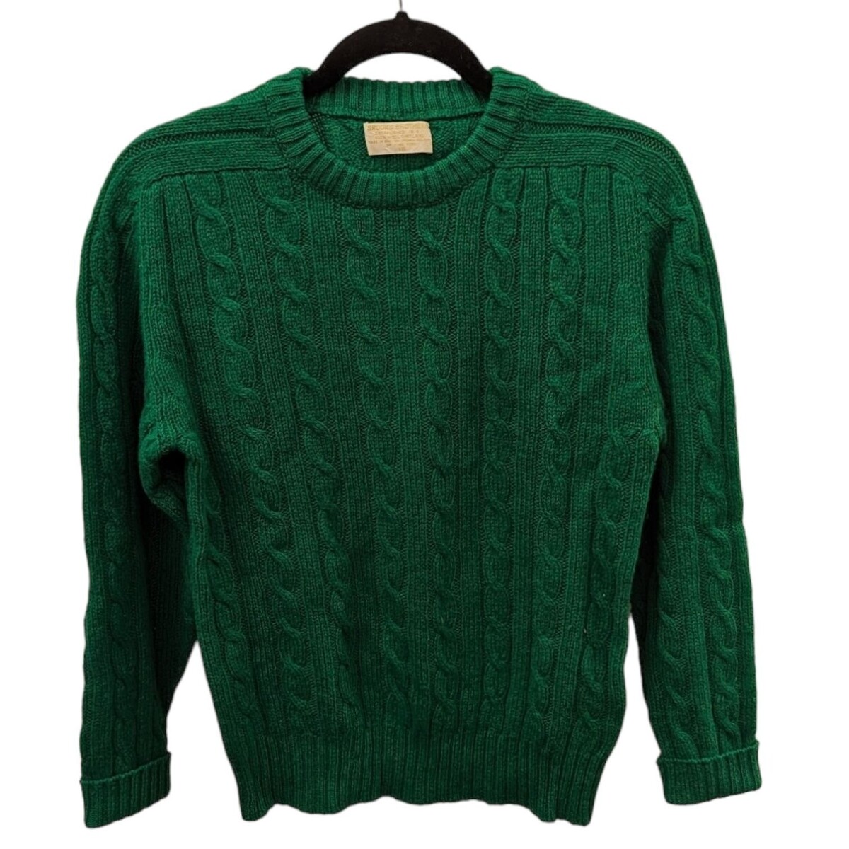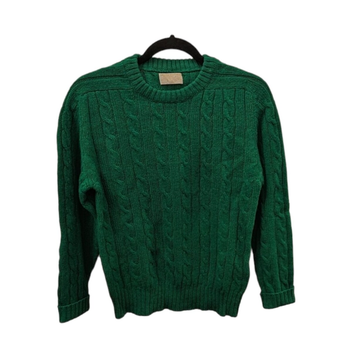 Brooks Brothers Shetland Cable Knit Sweater Green 100% Wool Size 16 Women's