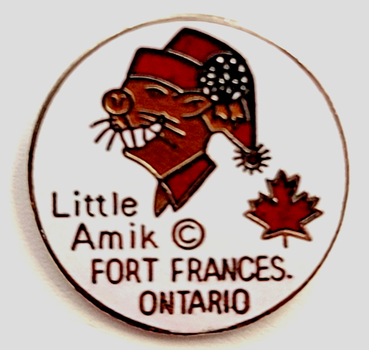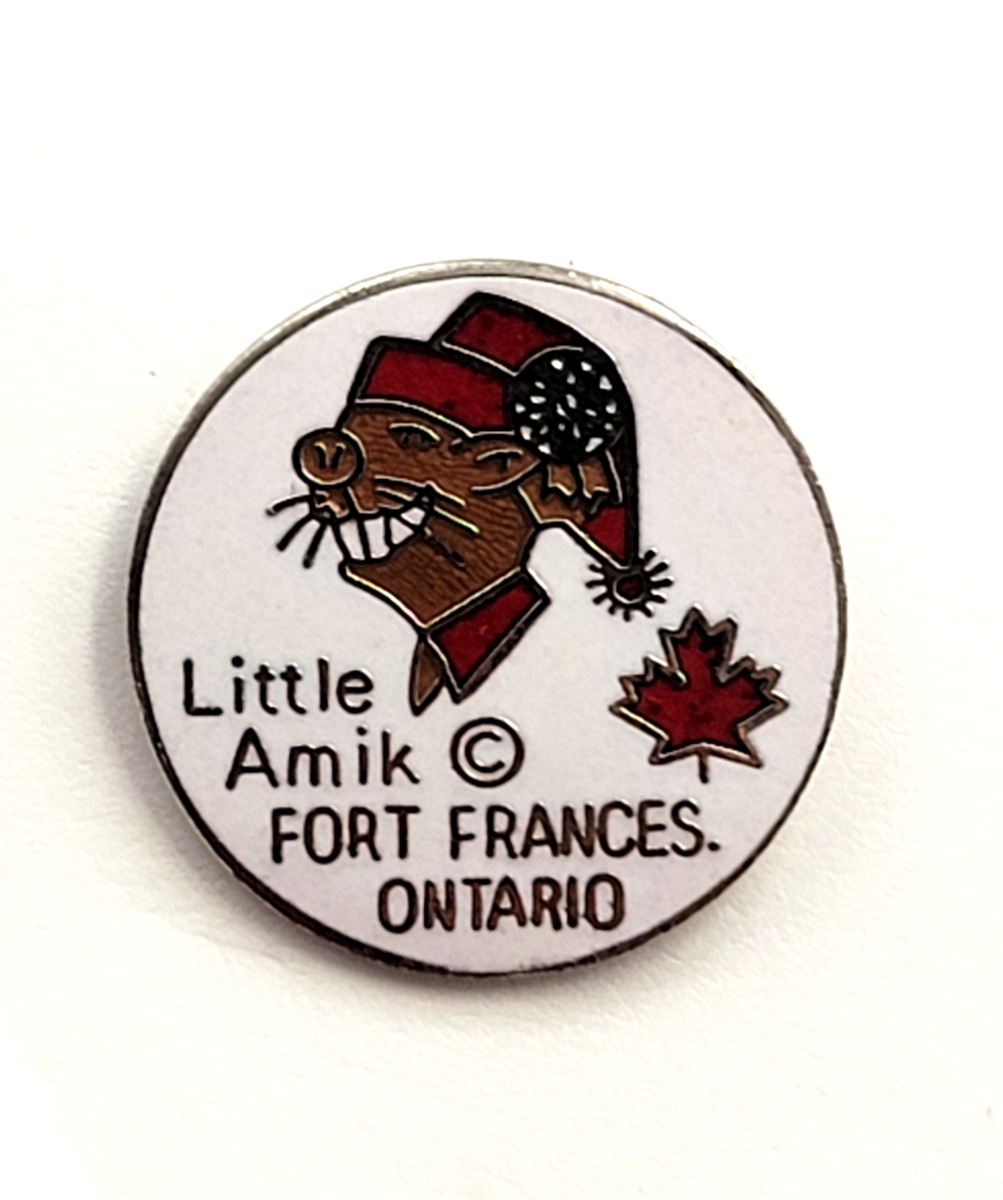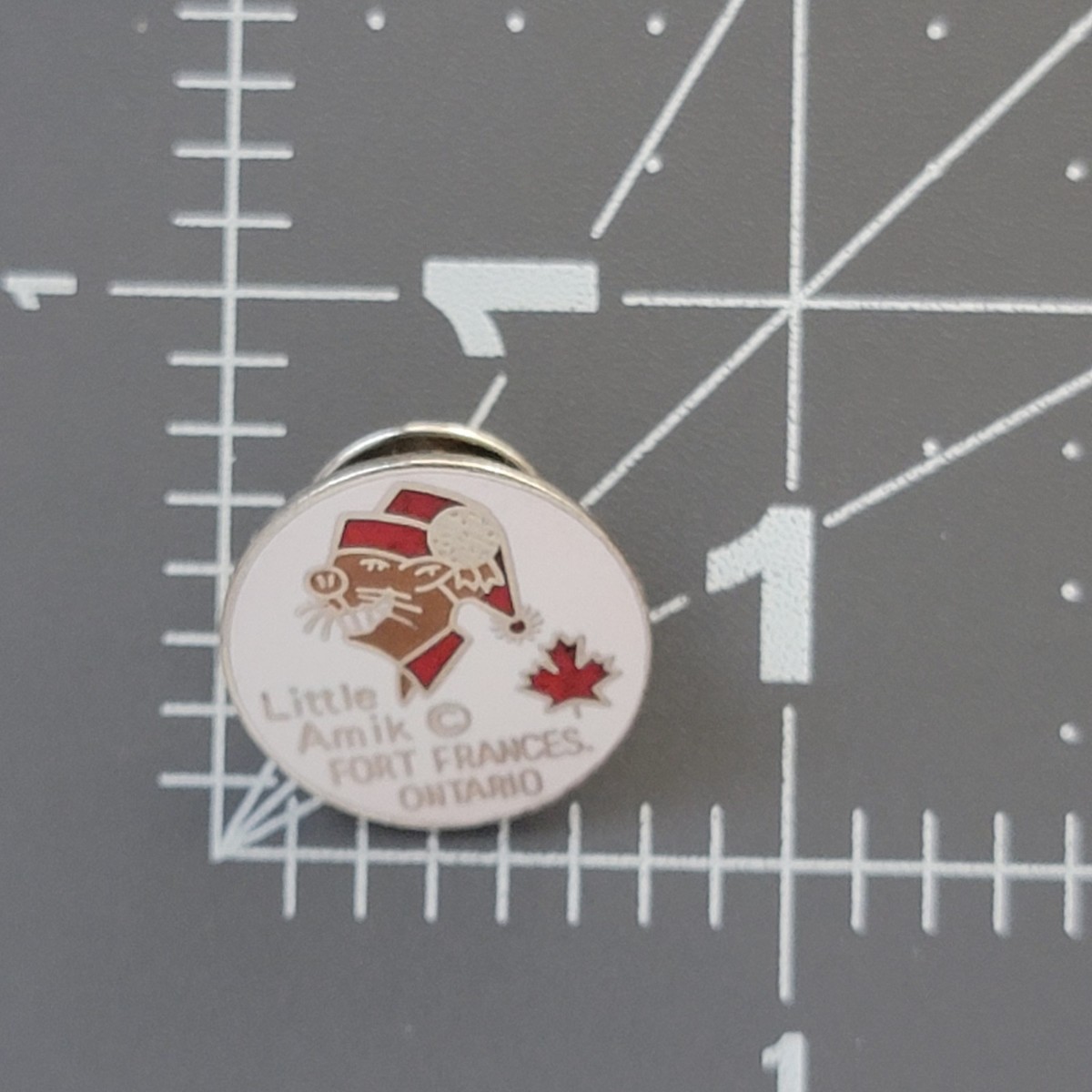 Little Amik Fort Frances Ontario Pin Beaver Mascot Maple Leaf Canada Souvenir