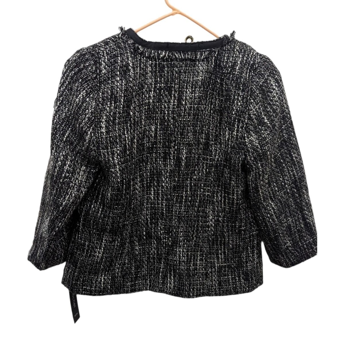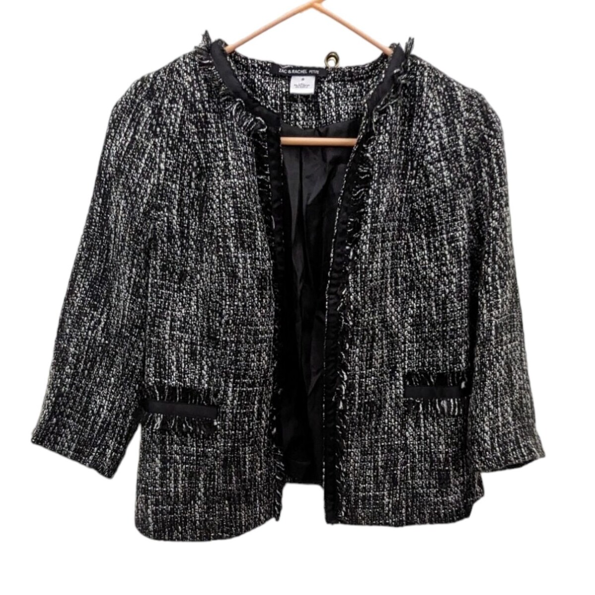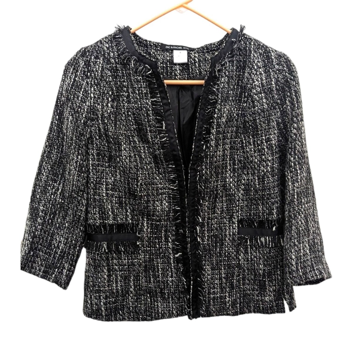 Zac Rachel Tweed Career Jacket Blazer Cardigan Black White Petite Small SP