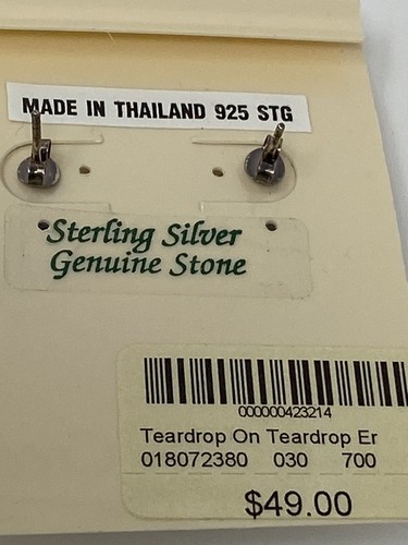New in Package! Coldwater Creek Sterling Silver Black Gemstone Teardrop on Teardrop Earring Post