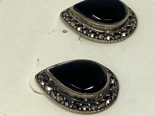 NIP Coldwater Creek Sterling Silver Black Gemstone Post Teardrop Earrings