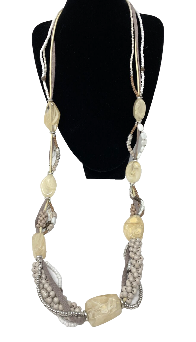 Chico's Multi Strand Beaded Necklace White/Beige