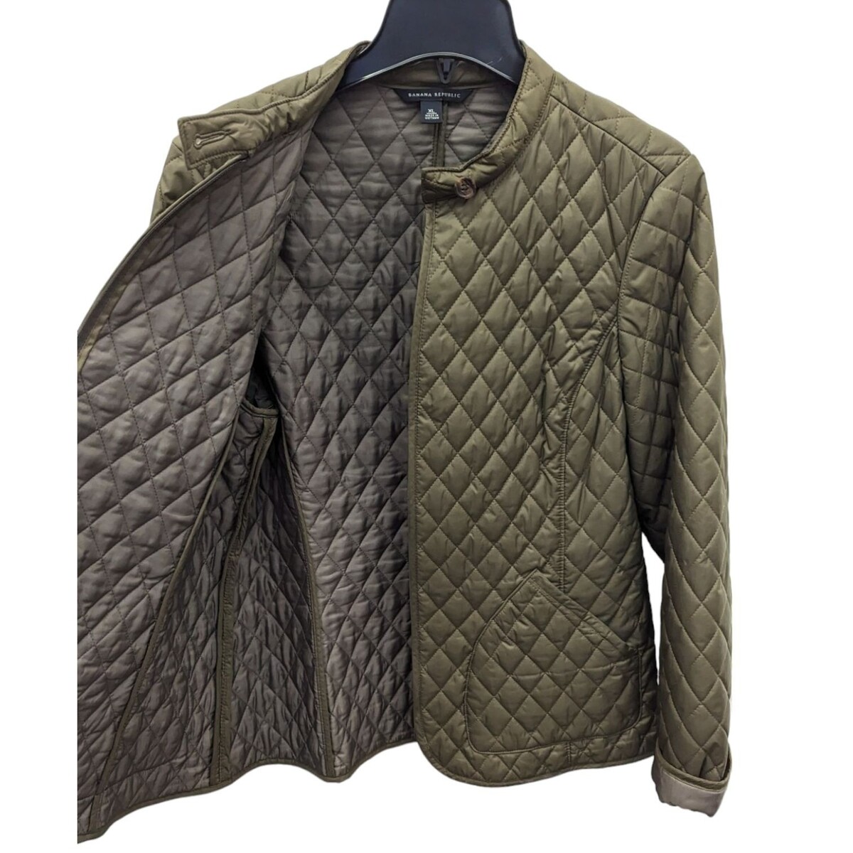Banana Republic Quilted Mock Neck Open Front Puffer Jacket Olive Green Size XL