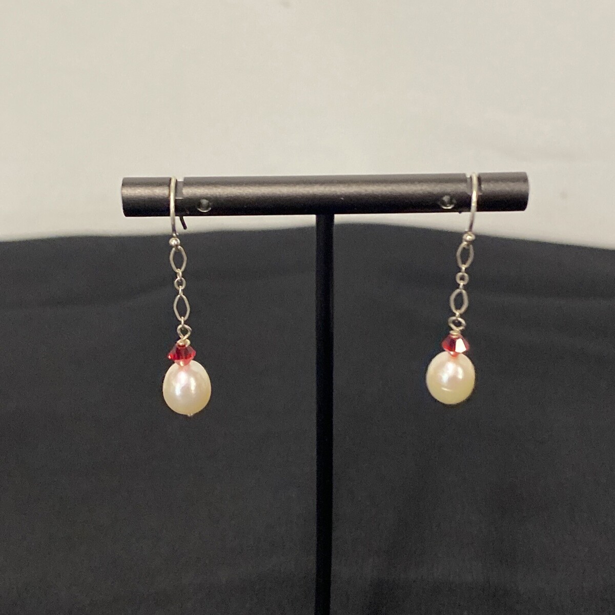 Artisan Made Cultured Pearl and Swarovski Crystal Drop Pierced Earrings