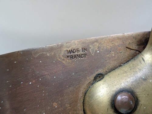 Add a touch of vintage charm to your kitchen with this beautiful hand-hammered copper saucepan from The Design Store France. The 9.5 inch round pan, with a 3 inch height, is perfect for cooking sauces and features a tin lining for easy cleaning. This antique saucepan is suitable for use on gas, electric, and induction stoves and is made of high-quality copper, tin, and cast iron. The set includes one saucepan and is an original piece from the 1970s. Bring a piece of French culinary history to your home with this beautiful copper saucepan.