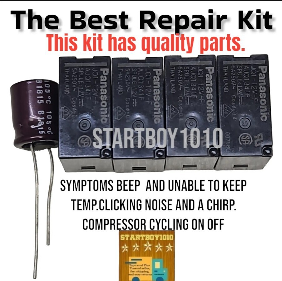 REBUILD KIT FOR WHIRLPOOL CONTROL BOARD W10219463 W10219462 1 CAP 5-RELAYS 12 VOLT 5 PIN Defective Module Whirlpool , Kitchen Aid W10219463 / 2307028 / 2303934 Symptoms: beeping and unable to keep temp. clicking noise and a chirp. Compressor cycling on n off. W10219463 replaces part numbers: W10219462 replaces part numbers:AP4429562W101210492304135PS23607222307028RW1018529123070052307028230393422234432252111 Kenmore, Kitchen-Aid, Maytag, Whirlpool, Jenn-Air. W10219463 / 2307028 / 2303934 / W10219462 / W10121049 / W10219462A 10641522500 10641523500 10641524500 10641529500 10644022600 10644022601 10644022602 10644022603 10644023600 10644023601 10644023602 10644023603 10644024600 10644029600 10644029601 10644029602 10644029603 10644032600 10644032601 10644032602 10644032603 10644033600 10644033601 10644033602 10644033603 10644034600 10644039600 10644039601 10644039602 10644039603 10644322400 10644323400 10644324400 10644329400 10644422600 10644422601 10644422602 10644422603 10644423600 10644423601 10644423602 10644423603 10644424600 10644424601 10644424602 10644424603 10644429600 10644429601 10644429602 10644429603 10644432600 10644432601 10644432602 10644432603 10644433600 10644433601 10644433602 10644433603 10644434600 10644434601 10644434602 10644434603 10644439600 10644439601 10644439602 10644439603 EC3JHAXRL00 EC3JHAXRL01 EC3JHAXRS00 EC3JHAXRS01 GC3NHAXSB00 GC3NHAXSQ00 GC3NHAXST00 GC3NHAXSY00 GC3NHAXVA00 GC3NHAXVA01 GC3NHAXVB00 GC3NHAXVB01 GC3NHAXVQ00 GC3NHAXVQ01 GC3NHAXVS00 GC3NHAXVS01 GC3NHAXVY00 GC3NHAXVY01 GC3PHEXNB00 GC3PHEXNB01 GC3PHEXNB02 GC3PHEXNB03 GC3PHEXNQ00 GC3PHEXNQ01 GC3PHEXNQ02 GC3PHEXNQ03 GC3PHEXNS00 GC3PHEXNS01 GC3PHEXNS02 GC3PHEXNS03 GC3PHEXNT00 GC3PHEXNT01 GC3PHEXNT02 GC3PHEXNT03 GC3SHEXNB00 GC3SHEXNB01 GC3SHEXNB02 GC3SHEXNB03 GC3SHEXNB04 GC3SHEXNQ00 GC3SHEXNQ01 GC3SHEXNQ02 GC3SHEXNQ03 GC3SHEXNQ04 GC3SHEXNS00 GC3SHEXNS01 GC3SHEXNS02 GC3SHEXNS03 GC3SHEXNS04 GC3SHEXNT00 GC3SHEXNT01 GC3SHEXNT02 GC3SHEXNT03 GC3SHEXNT04 GC5NHAXSB00 GC5NHAXSB01 GC5NHAXSB02 GC5NHAXSB03 GC5NHAXSQ00 GC5NHAXSQ01 GC5NHAXSQ02 GC5NHAXSQ03 GC5NHAXST00 GC5NHAXST01 GC5NHAXST02 GC5NHAXST03 GC5NHAXSY00 GC5NHAXSY01 GC5NHAXSY02 GC5NHAXSY03 GC5NHAXVB00 GC5NHAXVB01 GC5NHAXVQ00 GC5NHAXVQ01 GC5NHAXVS00 GC5NHAXVS01 GC5NHAXVY00 GC5NHAXVY01 GC5SHEXNB00 GC5SHEXNB01 GC5SHEXNB02 GC5SHEXNB03 GC5SHEXNB04 GC5SHEXNB05 GC5SHEXNQ00 GC5SHEXNQ01 GC5SHEXNQ02 GC5SHEXNQ03 GC5SHEXNQ04 GC5SHEXNQ05 GC5SHEXNS00 GC5SHEXNS01 GC5SHEXNS02 GC5SHEXNS03 GC5SHEXNS04 GC5SHEXNS05 GC5SHEXNT00 GC5SHEXNT01 GC5SHEXNT02 GC5SHEXNT03 GC5SHEXNT04 GC5SHEXNT05 GC5THEXNB00 GC5THEXNB01 GC5THEXNB02 GC5THEXNB03 GC5THEXNQ00 GC5THEXNQ01 GC5THEXNQ02 GC5THEXNQ03 GC5THEXNS00 GC5THEXNS01 GC5THEXNS02 GC5THEXNS03 GC5THEXNT00 GC5THEXNT01 GC5THEXNT02 GC5THEXNT03 JCB2488MTR00 JCB2581WES00 JCB2582WEF00 JCB2582WEY00 JCB2585WEP00 JCB2585WEP01 JCB2585WES00 JCB2585WES01 JCB2587WEF00 JCB2587WEY00 JCB2588WER00 JCD2395WES00 JCD2395WES01 JCD2395WES02 JCD2591WES00 JCD2595WEK00 JCD2595WEK01 JCD2595WEP00 JCD2595WEP01 JCD2595WES00 JCD2595WES01 KBLC36FMS01 KBLC36FMS02 KBLO36FMX01 KBLO36FMX02 KBLP36FMS02 KBLS36FMB01 KBLS36FMB02 KBLS36FMX01 KBLS36FMX02 KBLV36FPM01 KBLV36FPM02 KBLV36FPS01 KBLV36FPS02 KBRC36FMS01 KBRC36FMS02 KBRO36FMX01 KBRO36FMX02 KBRP36FMS01 KBRP36FMS02 KBRS36FMB01 KBRS36FMB02 KBRS36FMX01 KBRS36FMX02 KBRV36FPM01 KBRV36FPM02 KBRV36FPS01 KBRV36FPS02 KBUDT4265E04 KBURT3665E01 KSBP23INSS00 KSBP23INSS01 KSBP25INSS00 KSBP25INSS01 KSBP25INSS02 KSBP25INSS03 KSBP25IVSS00 KSBP25IVSS01 KSBS23INBL00 KSBS23INBL01 KSBS23INBT00 KSBS23INBT01 KSBS23INSS00 KSBS23INSS01 KSBS23INWH00 KSBS23INWH01 KSBS25INBL00 KSBS25INBL01 KSBS25INBL02 KSBS25INBL03 KSBS25INBT00 KSBS25INBT01 KSBS25INBT02 KSBS25INBT03 KSBS25INSS00 KSBS25INSS01 KSBS25INSS02 KSBS25INSS03 KSBS25INWH00 KSBS25INWH01 KSBS25INWH02 KSBS25INWH03 KSBS25IVBL00 KSBS25IVBL01 KSBS25IVSS00 KSBS25IVSS01 KSBS25IVWH00 KSBS25IVWH01 KSCS23FSBL00 KSCS23FSBL01 KSCS23FSBL02 KSCS23FSBL03 KSCS23FSBT00 KSCS23FSBT01 KSCS23FSBT02 KSCS23FSBT03 KSCS23FSMS00 KSCS23FSMS01 KSCS23FSMS02 KSCS23FSMS03 KSCS23FSSS02 KSCS23FSSS03 KSCS23FSWH00 KSCS23FSWH01 KSCS23FSWH02 KSCS23FSWH03 KSCS23FTBL00 KSCS23FTBL01 KSCS23FTBL02 KSCS23FTBT00 KSCS23FTBT01 KSCS23FTBT02 KSCS23FTMS00 KSCS23FTMS01 KSCS23FTMS02 KSCS23FTSS00 KSCS23FTSS01 KSCS23FTSS02 KSCS23FTWH00 KSCS23FTWH01 KSCS23FTWH02 KSCS23FVBL00 KSCS23FVBL01 KSCS23FVBL02 KSCS23FVBL03 KSCS23FVMK00 KSCS23FVMK01 KSCS23FVMK02 KSCS23FVMK03 KSCS23FVMS00 KSCS23FVMS01 KSCS23FVMS02 KSCS23FVMS03 KSCS23FVSS00 KSCS23FVSS01 KSCS23FVSS02 KSCS23FVSS03 KSCS23FVWH00 KSCS23FVWH01 KSCS23FVWH02 KSCS23FVWH03 KSCS23INBL00 KSCS23INBL01 KSCS23INBL02 KSCS23INBL03 KSCS23INBT00 KSCS23INBT01 KSCS23INBT02 KSCS23INBT03 KSCS23INMS00 KSCS23INMS01 KSCS23INMS02 KSCS23INMS03 KSCS23INSS00 KSCS23INSS01 KSCS23INSS02 KSCS23INSS03 KSCS23INWH00 KSCS23INWH01 KSCS23INWH02 KSCS23INWH03 KSCS25FSBL00 KSCS25FSBL01 KSCS25FSBL02 KSCS25FSBL03 KSCS25FSBT00 KSCS25FSBT01 KSCS25FSBT02 KSCS25FSBT03 KSCS25FSMS00 KSCS25FSMS01 KSCS25FSMS02 KSCS25FSMS03 KSCS25FSSS01 KSCS25FSSS02 KSCS25FSSS03 KSCS25FSWH00 KSCS25FSWH01 KSCS25FSWH02 KSCS25FSWH03 KSCS25FTBL00 KSCS25FTBL01 KSCS25FTBL02 KSCS25FTBT00 KSCS25FTBT01 KSCS25FTBT02 KSCS25FTMK00 KSCS25FTMK01 KSCS25FTMK02 KSCS25FTMS00 KSCS25FTMS01 KSCS25FTMS02 KSCS25FTSS00 KSCS25FTSS01 KSCS25FTSS02 KSCS25FTWH00 KSCS25FTWH01 KSCS25FTWH02 KSCS25FVBL00 KSCS25FVBL01 KSCS25FVBL02 KSCS25FVBL03 KSCS25FVBT00 KSCS25FVBT01 KSCS25FVBT02 KSCS25FVBT03 KSCS25FVMK00 KSCS25FVMK01 KSCS25FVMK02 KSCS25FVMK03 KSCS25FVMS00 KSCS25FVMS01 KSCS25FVMS02 KSCS25FVMS03 KSCS25FVSS00 KSCS25FVSS01 KSCS25FVSS02 KSCS25FVSS03 KSCS25FVWH00 KSCS25FVWH01 KSCS25FVWH02 KSCS25FVWH03 KSCS25INBL00 KSCS25INBL01 KSCS25INBL02 KSCS25INBL03 KSCS25INBT00 KSCS25INBT01 KSCS25INBT02 KSCS25INBT03 KSCS25INMS00 KSCS25INMS01 KSCS25INMS02 KSCS25INMS03 KSCS25INSS00 KSCS25INSS01 KSCS25INSS02 KSCS25INSS03 KSCS25INWH00 KSCS25INWH01 KSCS25INWH02 KSCS25INWH03 KSCS25MSMS00 KSCS25MSMS01 KSCS25MTMK00 KSCS25MTMK01 KSCS25MTMS00 KSCS25MTMS01 KSCS25MVMK00 KSCS25MVMS00 KSSC36FMS01 KSSC36FMS02 KSSC36FMS03 KSS