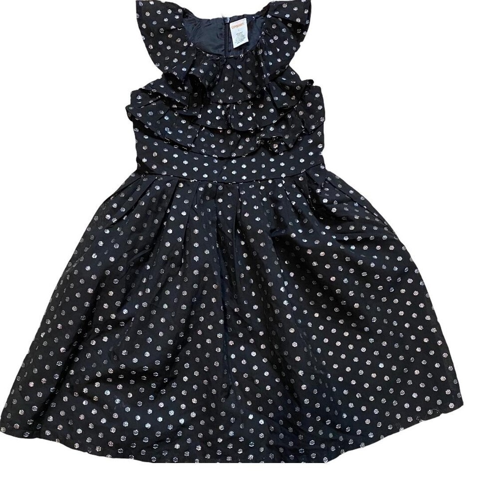 Gymboree Sz 5 Black w/ Silver Polka Dots Party Dress