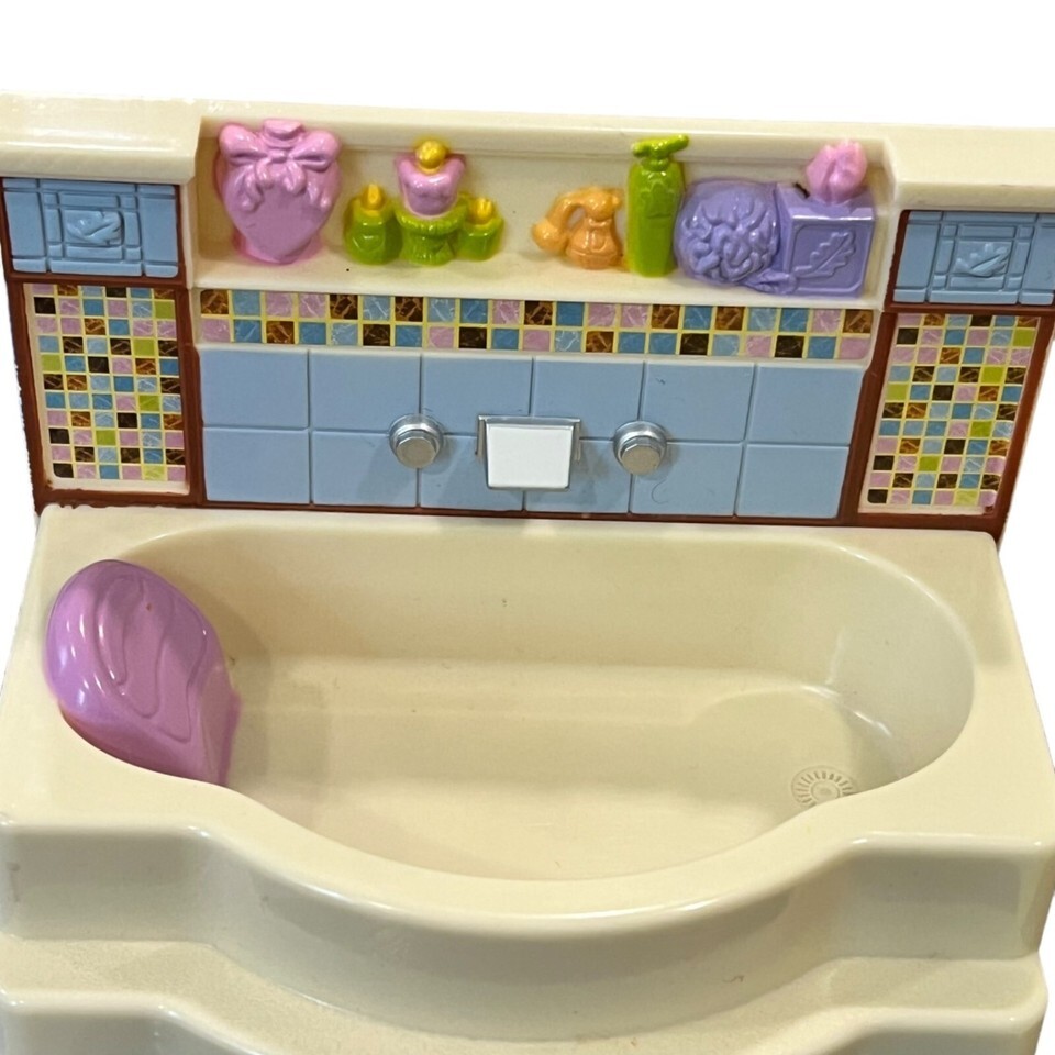 Enhance your dollhouse with this Fisher-Price bathtub set featuring vivid tile designs and charming bathroom accessories. Ideal for imaginative play.