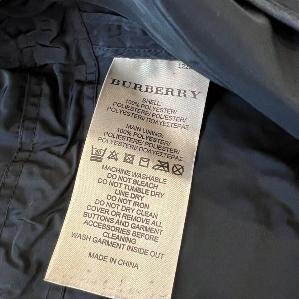 This Burberry Brit Women's Windbreaker Raincoat is a size 10, stylish black jacket with a removable hood. Crafted from durable polyester, it's perfect for rainy days.