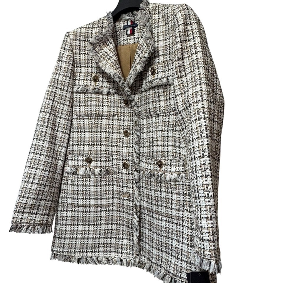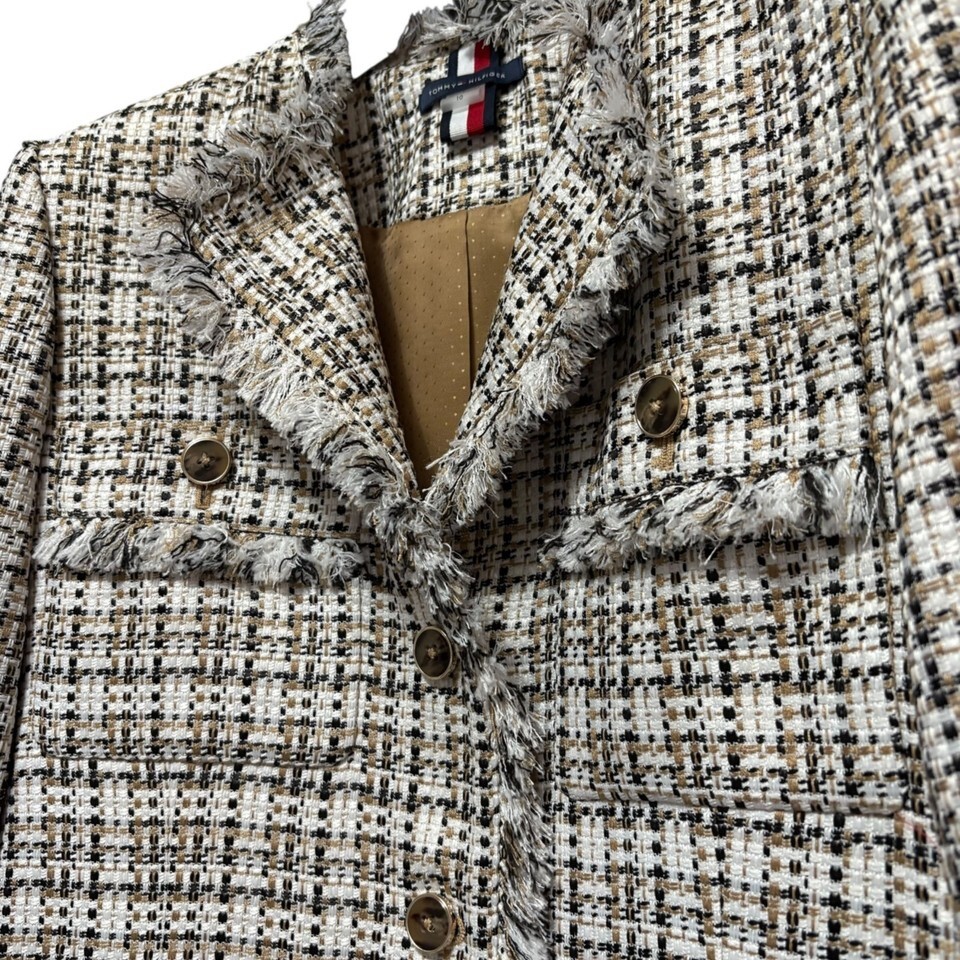 Tommy Hilfiger Womens Tweed Blazer Jacket Size 10 Fringed Trim Button Front NWT
