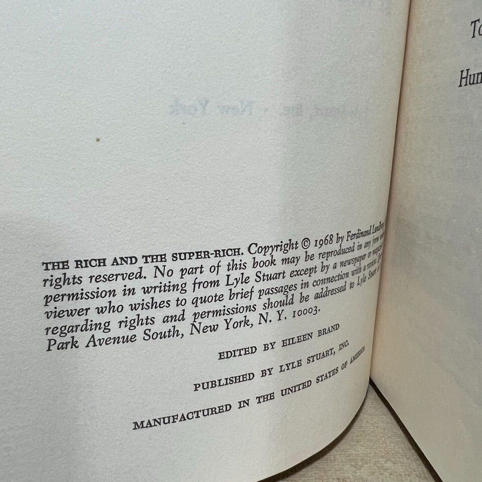 The Rich And The Super-Rich By Ferdinand Lundberg Hardcover 1968 Edition With Du