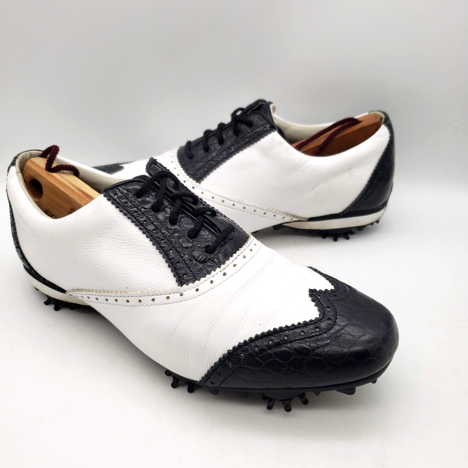 Women's Footjoy LoPro Golf Shoes 8 M Full Grain Leather Black Croc Wing Tip