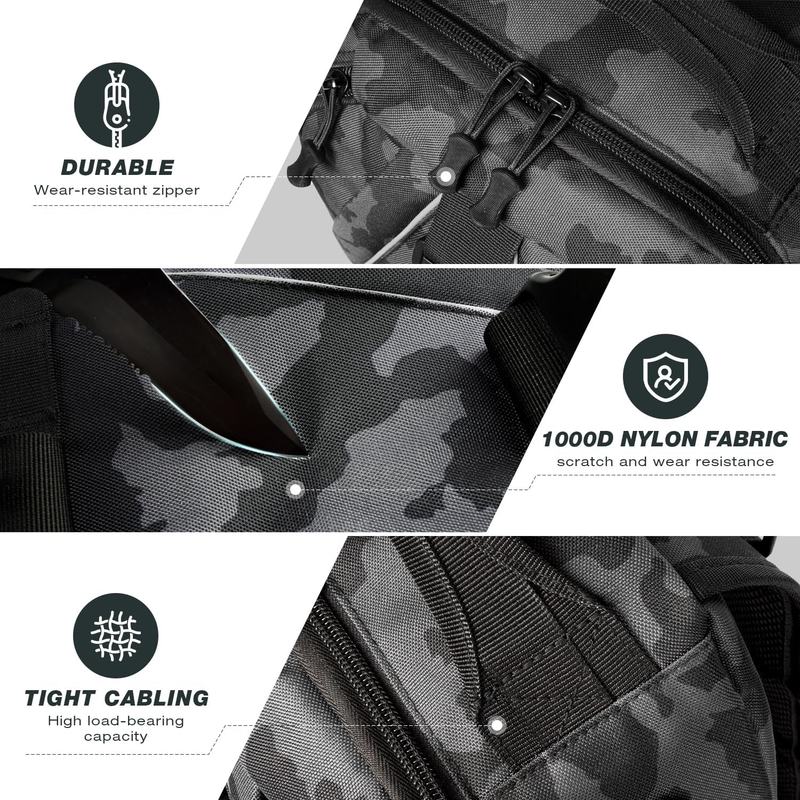 Made from high-density, water-resistant nylon fabric with tight stitching for superior strength. This fishing gear organizer resists wear and tear in both freshwater and saltwater environments.