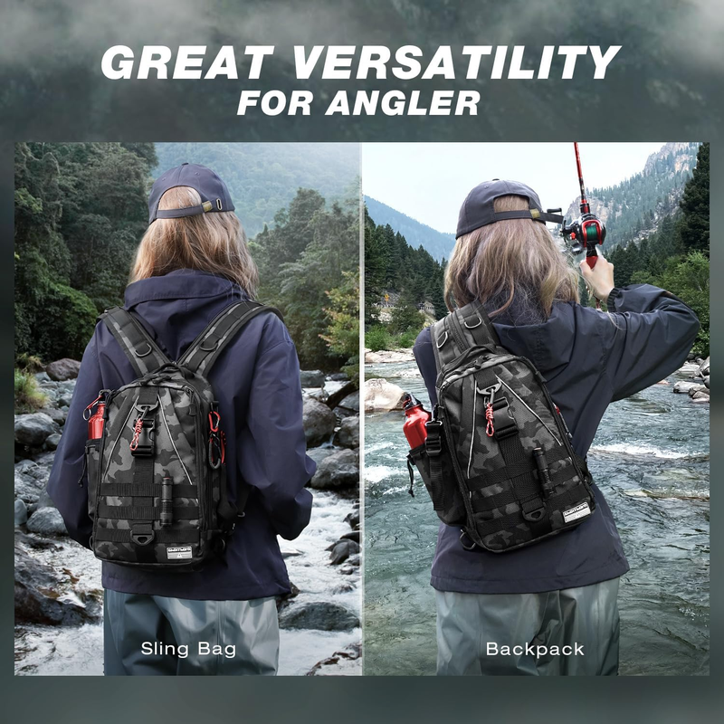 ? Waterproof Multi-Use Fishing Tackle Bag ? Adjustable Sling Backpack for Men Women