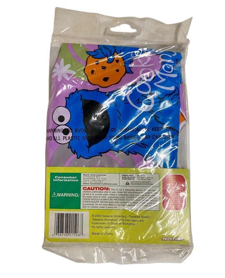 Sesame Street Beach Ball Cookie Monster Vintage Indoor Outdoor NOS 2003 24”