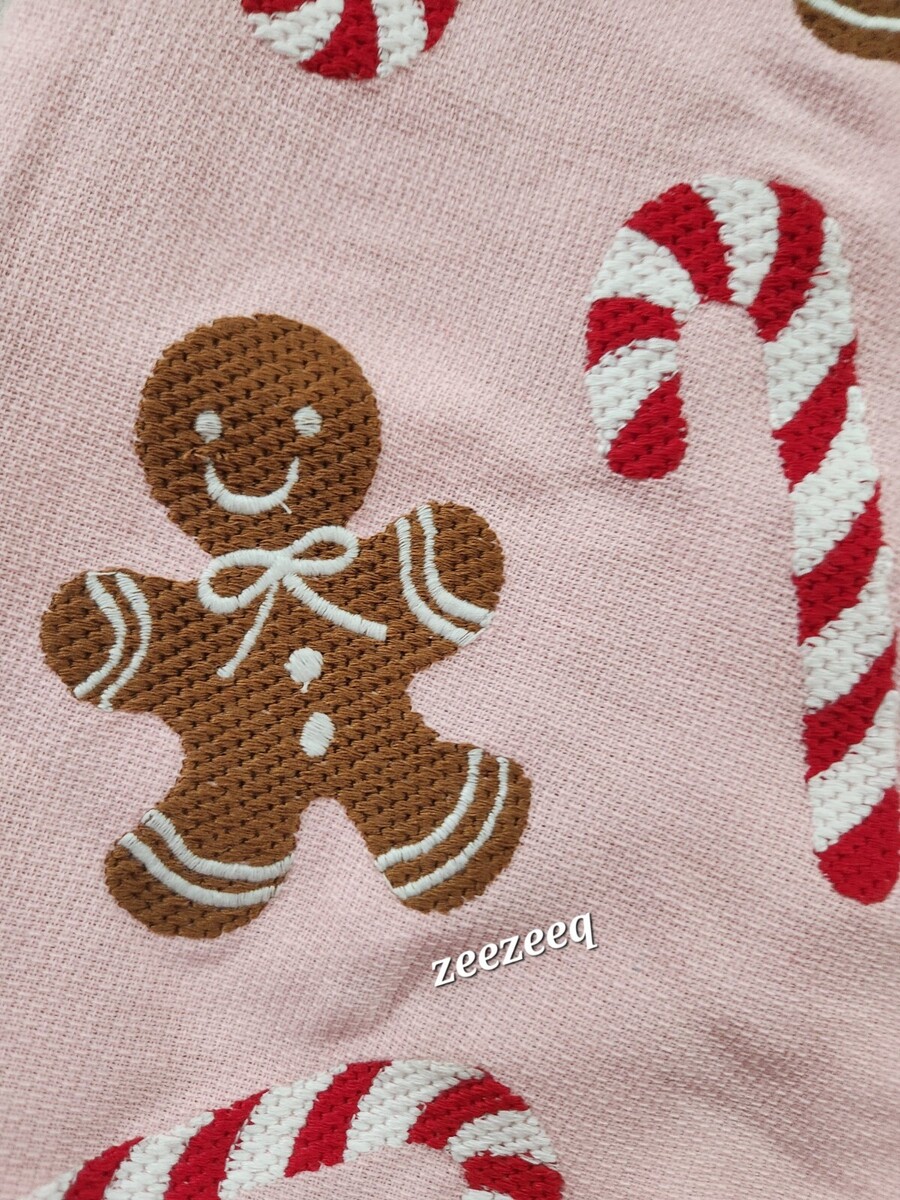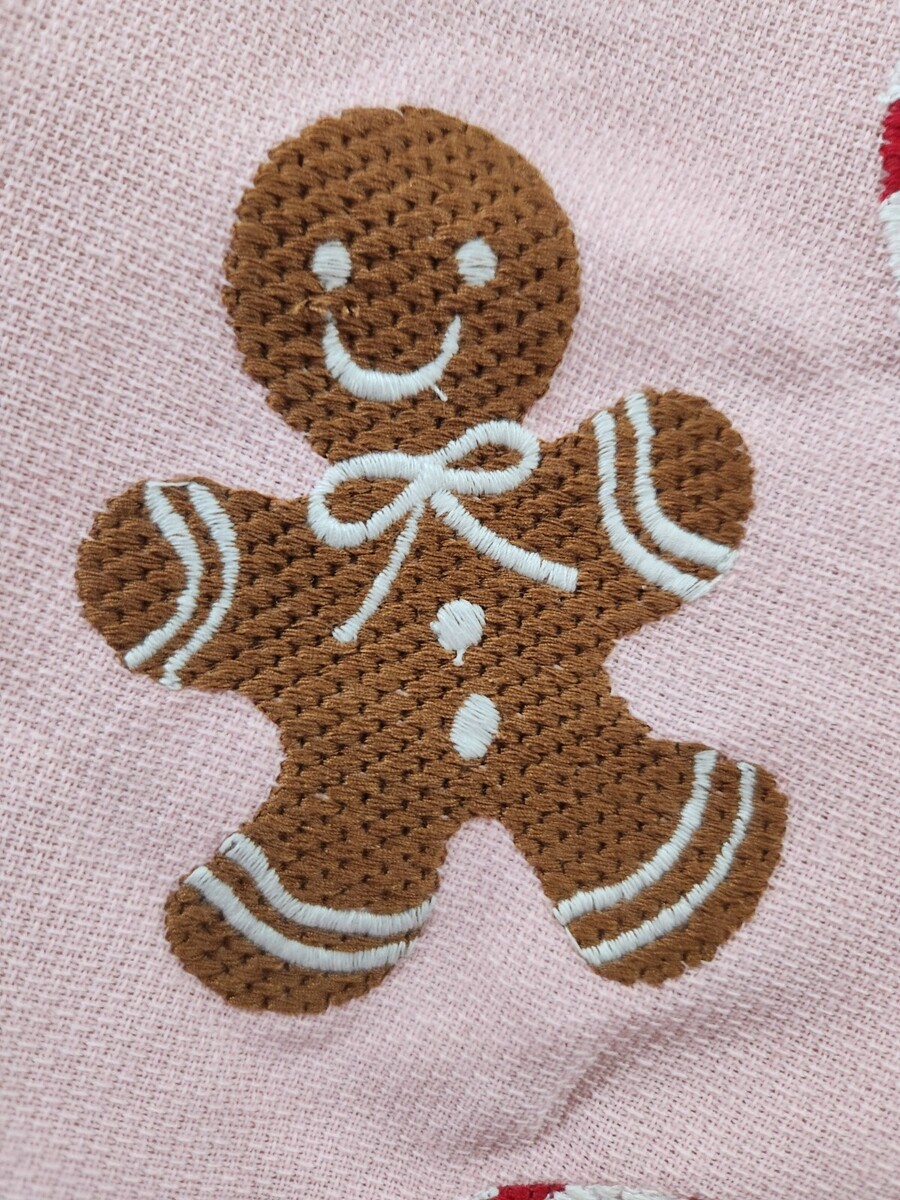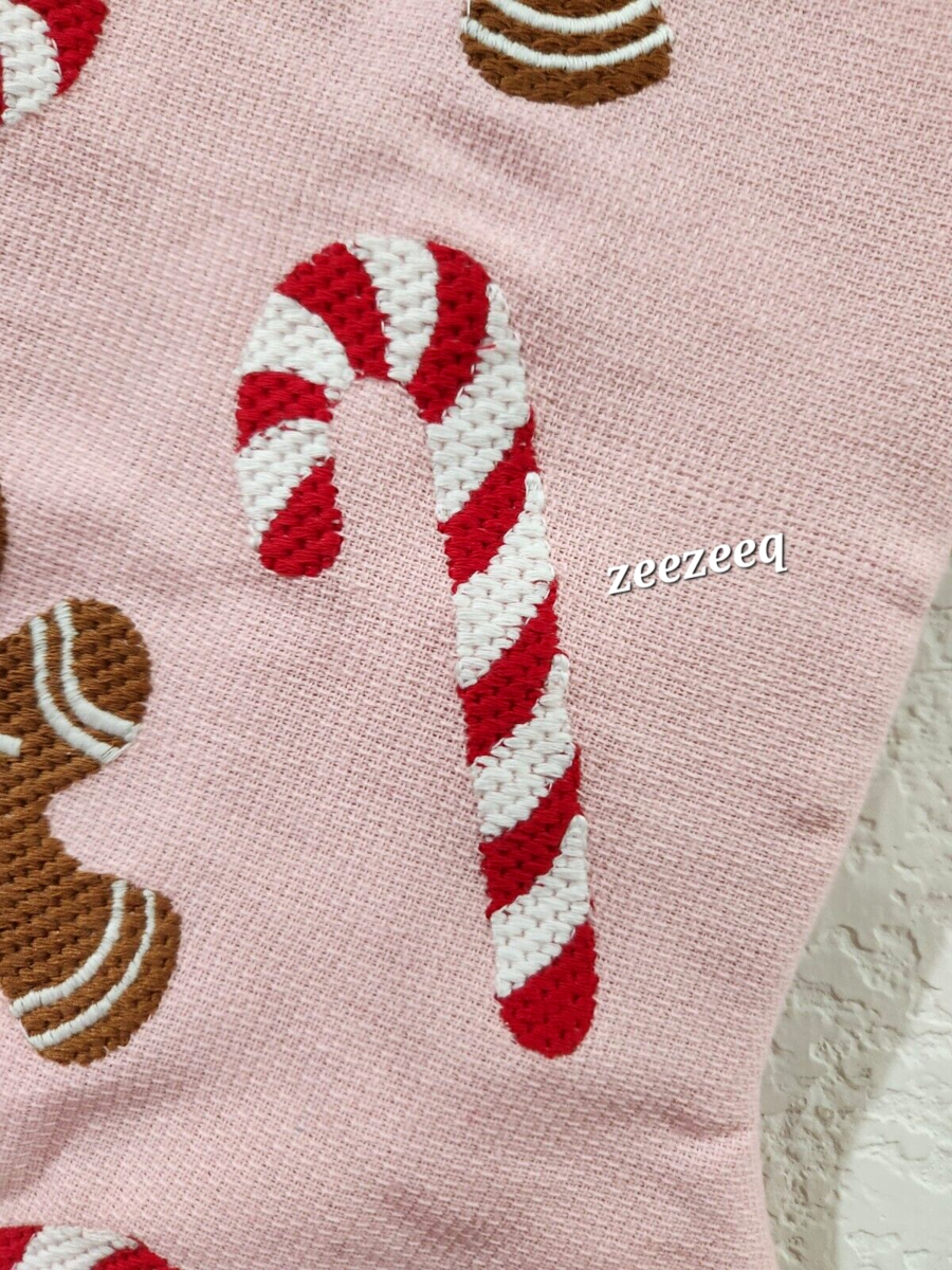 Up for sale we have this adorable gingerbread Cupcakes and Cashmere Christmas stocking for your holiday decor. The stocking has a gingerbreads witch candy canes. It measures approx 22" long.