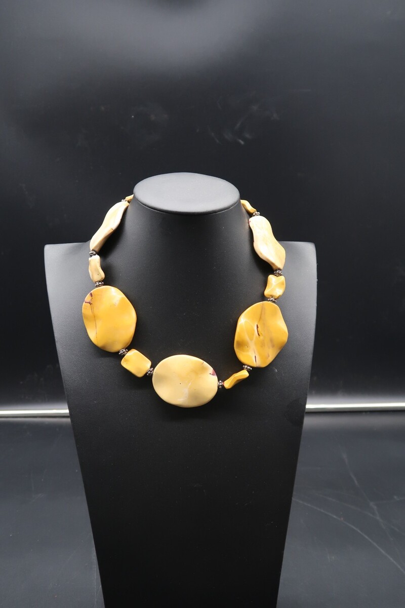 Vtg Baltic Amber Look Choker Length 19" Irregular Egg Yolk Color Beads Necklace